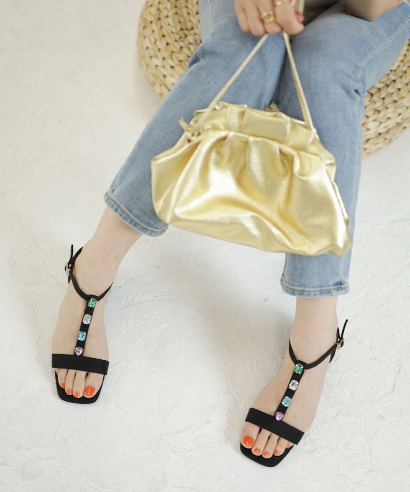 今季トレンドの"Tストラップフォルム"をポイントにしたサンダルは、スクエアトゥで少しモードな大人っぽさを取り入れました。