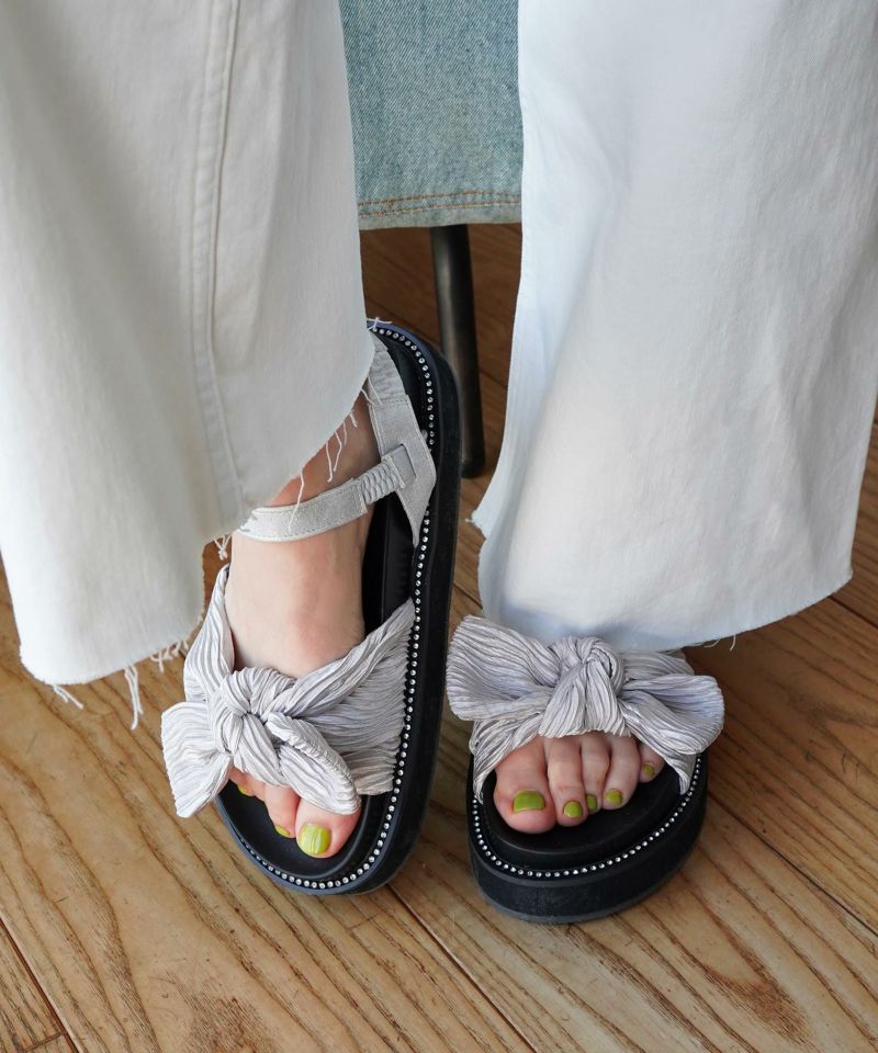 4. プリーツリボンフットベッドサンダル▲返品不可