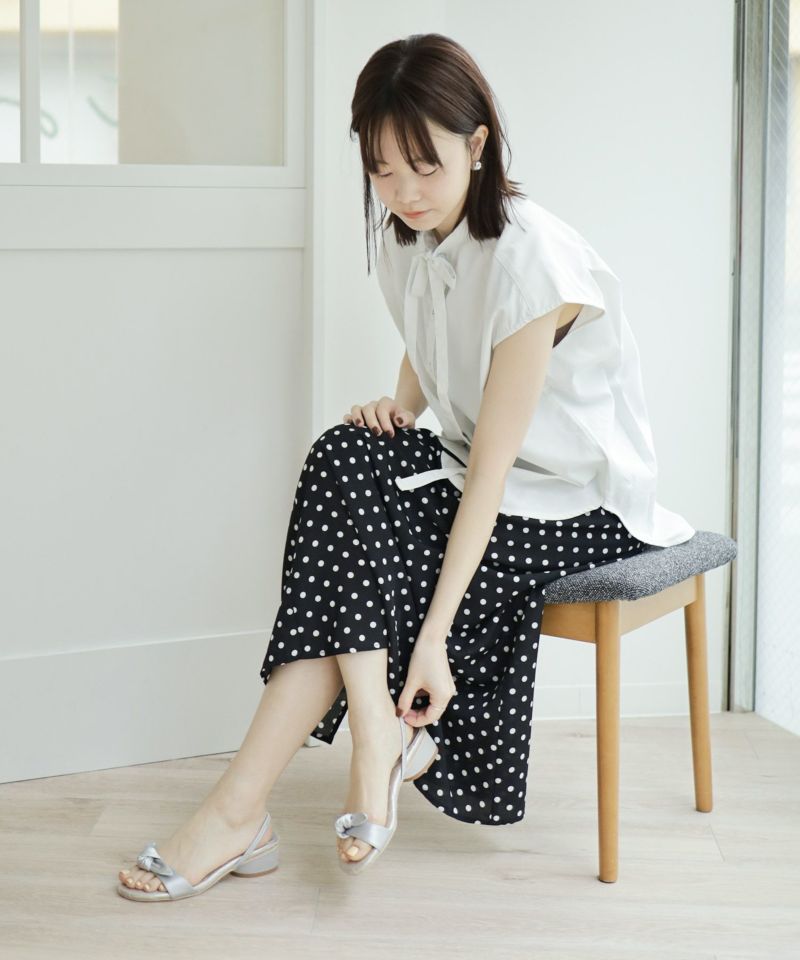 つま先側のストラップに添えられたリボンは取り外しができるので、シンプルに履きたい時は玄関先でさっと簡単に取り外しできます。