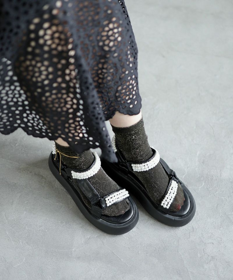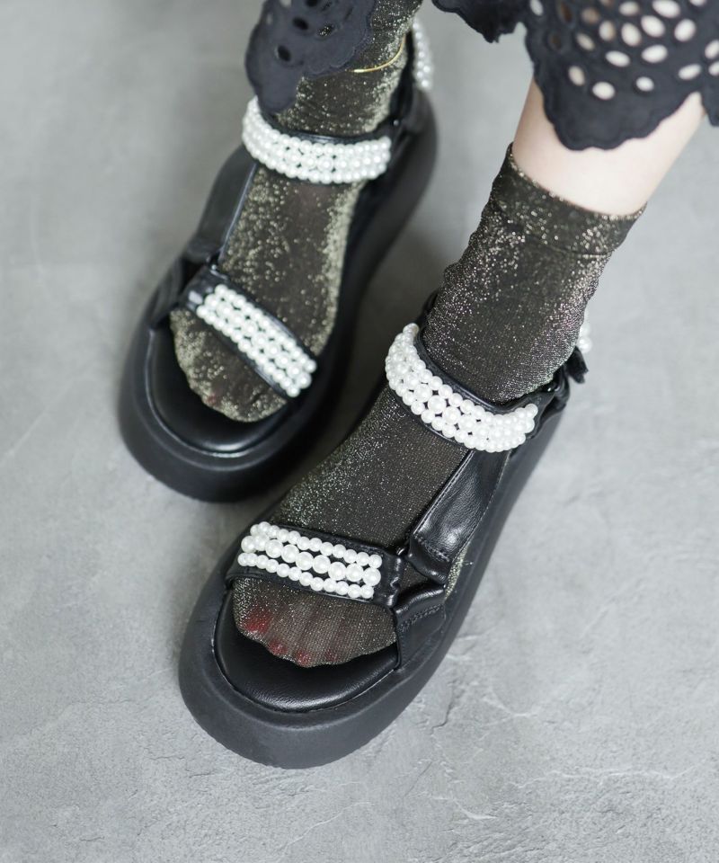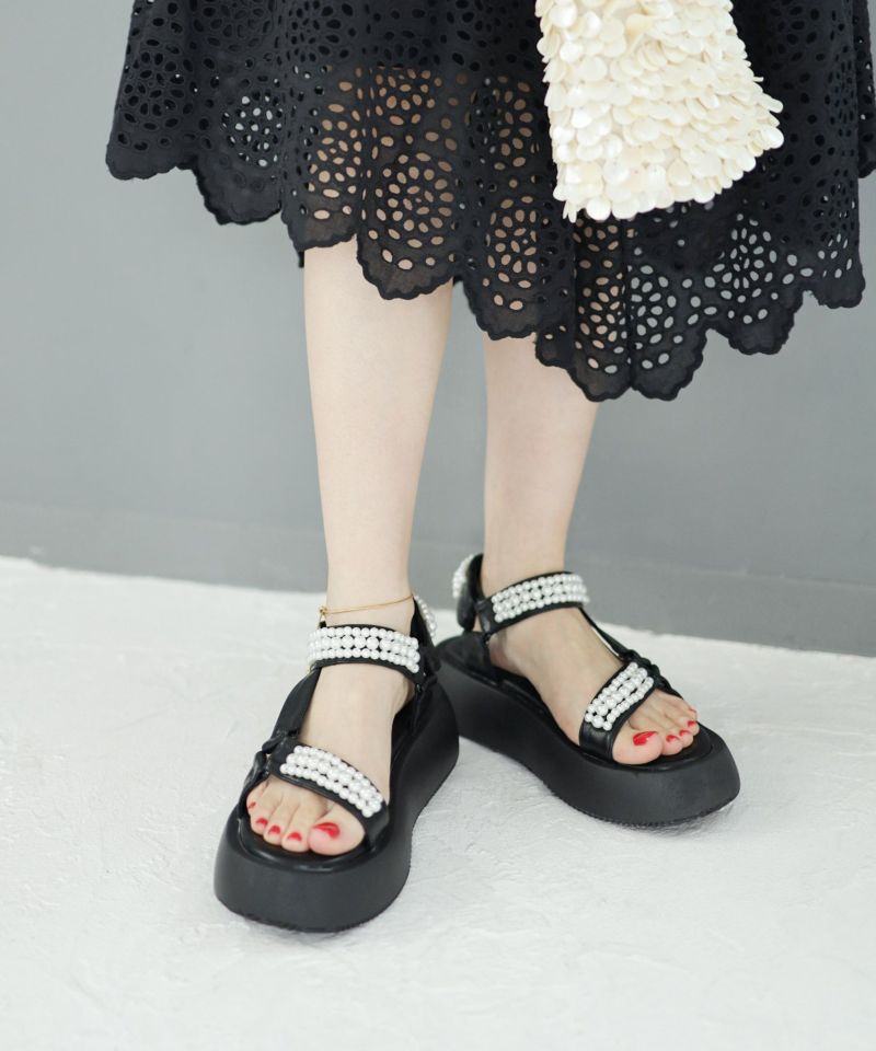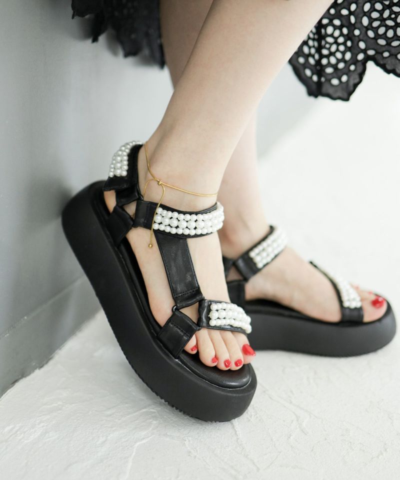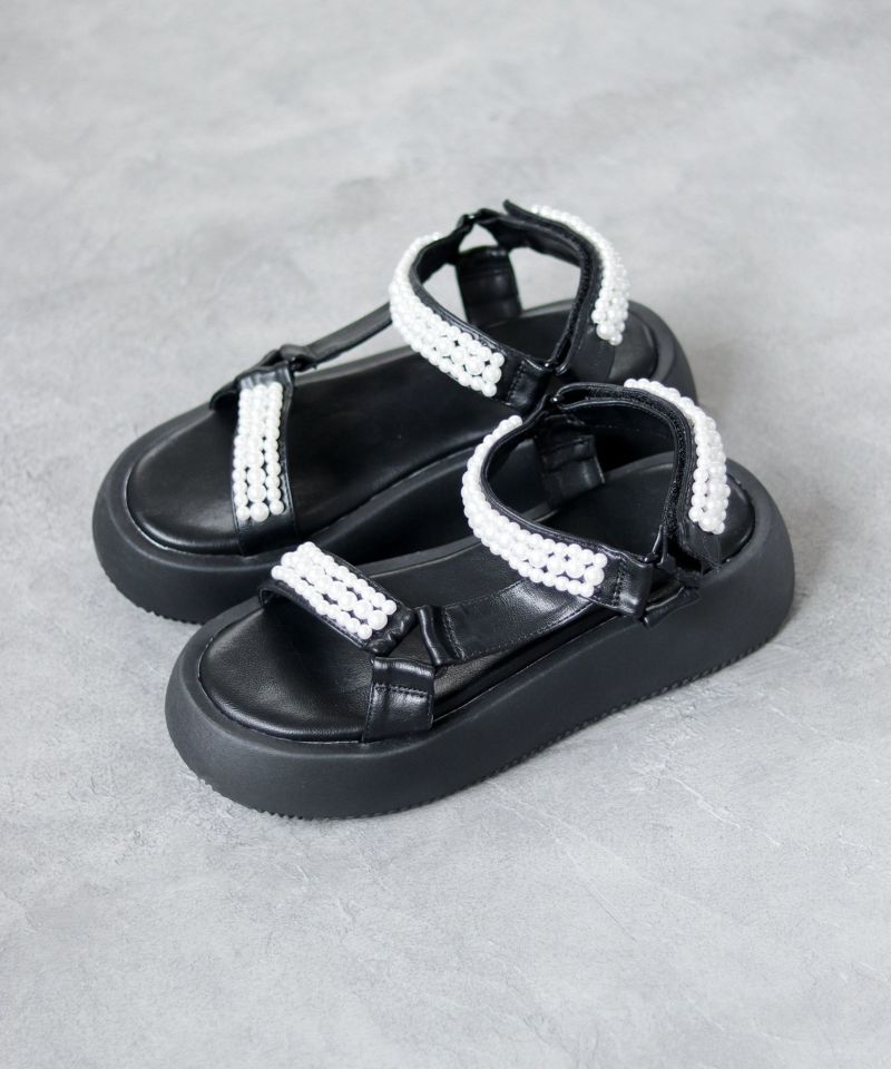 4. パールデザイン厚底ベルクロスポーツサンダル▲返品不可