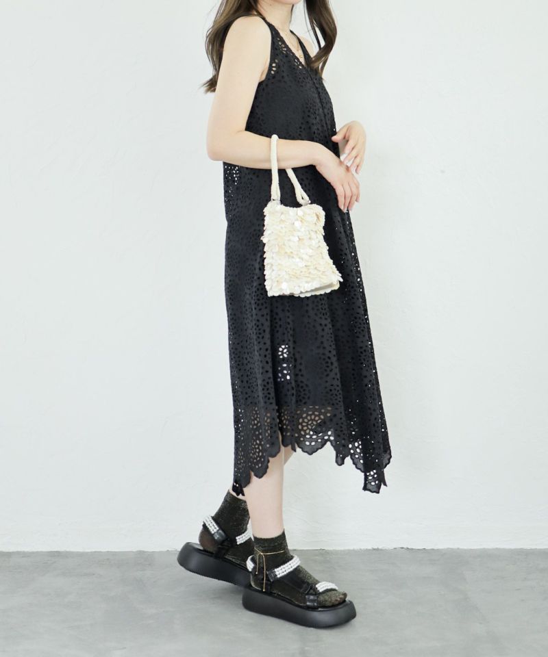 つま先側のストラップに加え、足首側もぐるりと一周パールを施したことで、後ろ姿も抜かりなし!
