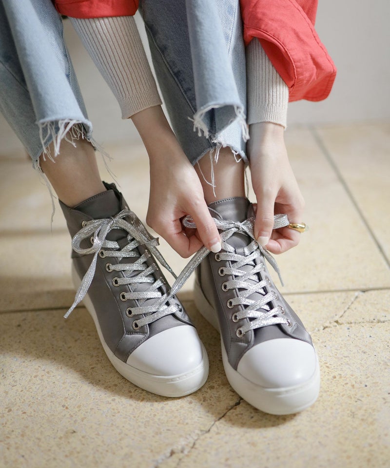 4. サテン素材8ホールレースアップ厚底スニーカー ▲訳あり商品のため返品交換不可▲