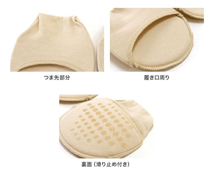 パンプスやセパレートタイプのパンプス、つま先部分の隠れたサンダルをお召しになる際に大活躍のつま先カバークッションソックス。