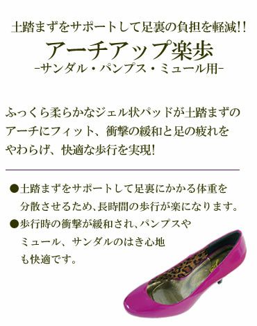 ふっくら柔らかなジェル状パッドが土踏まずのアーチにフィット、