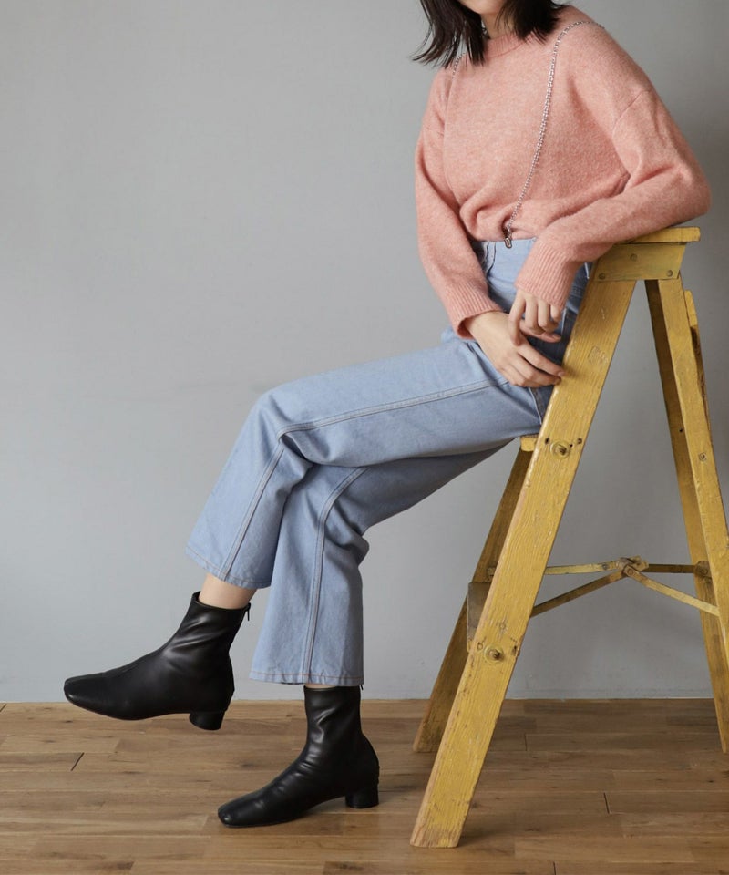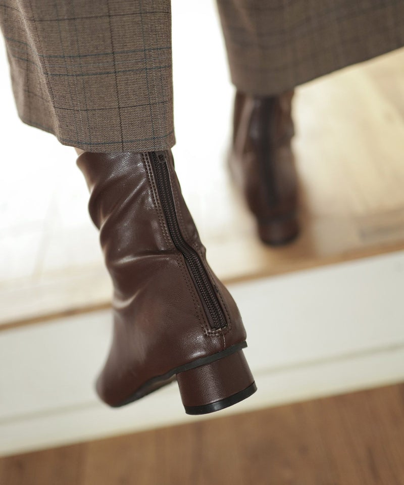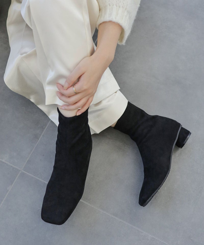 ローヒール×ストレッチタイプのブーツは今季トレンドのパンツをかぶせて履くレイヤードスタイルにも相性抜群。スタイリッシュでこなれ感漂う1足です。