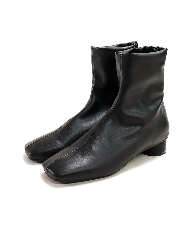 柔らかい合成皮革でしっかりストレッチが効くので程よくフィット感が生まれ、ブーツを履くことでほっそり+すっきり見え効果があります。