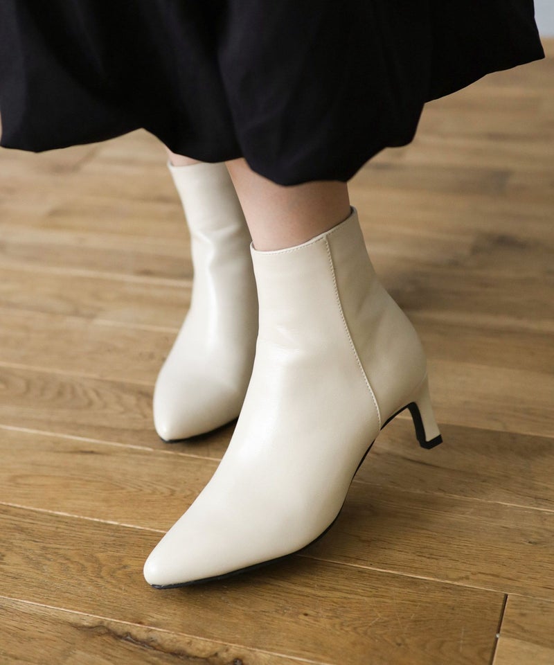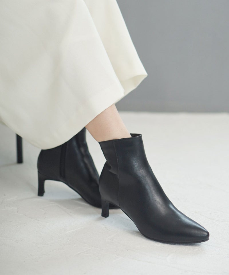 4. 削れにくいかかとゴム使用!ポインテッドトゥストレートヒールショートブーツ