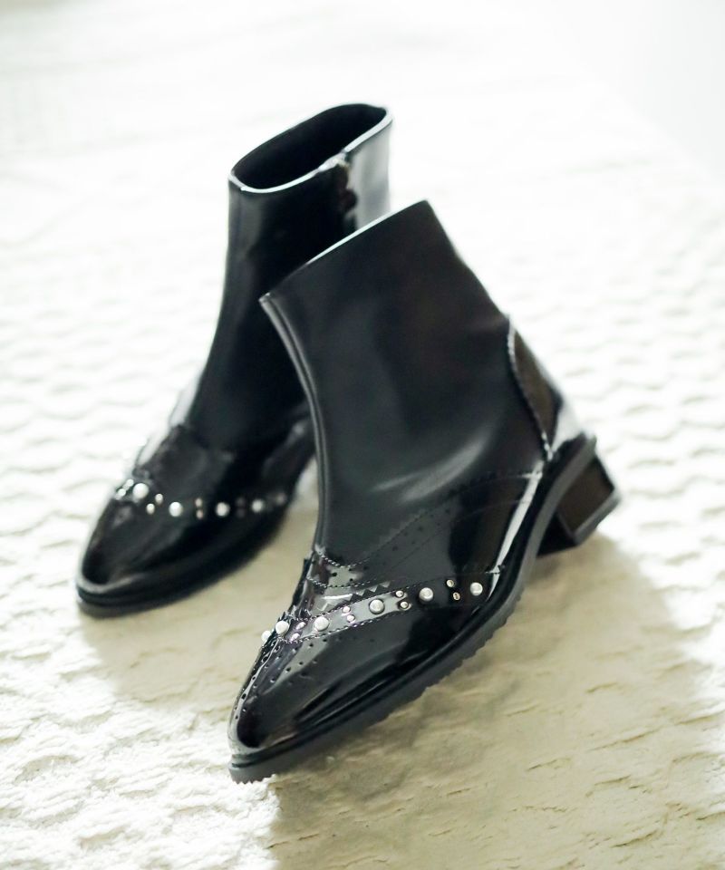 パール×ウイングチップショートブーツ▲返品不可
