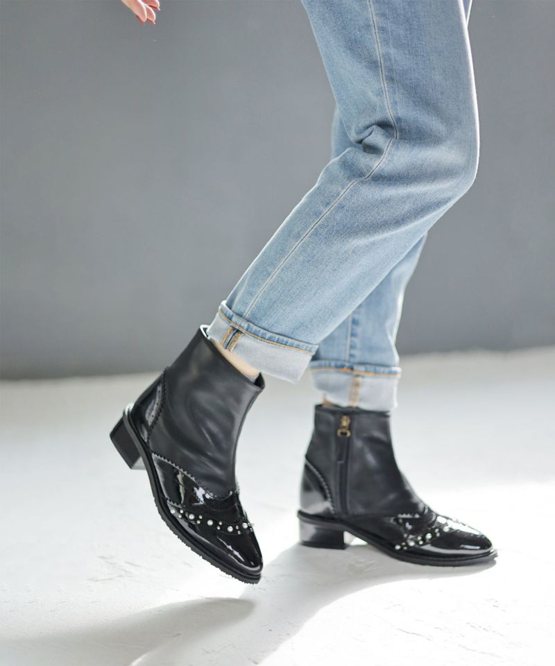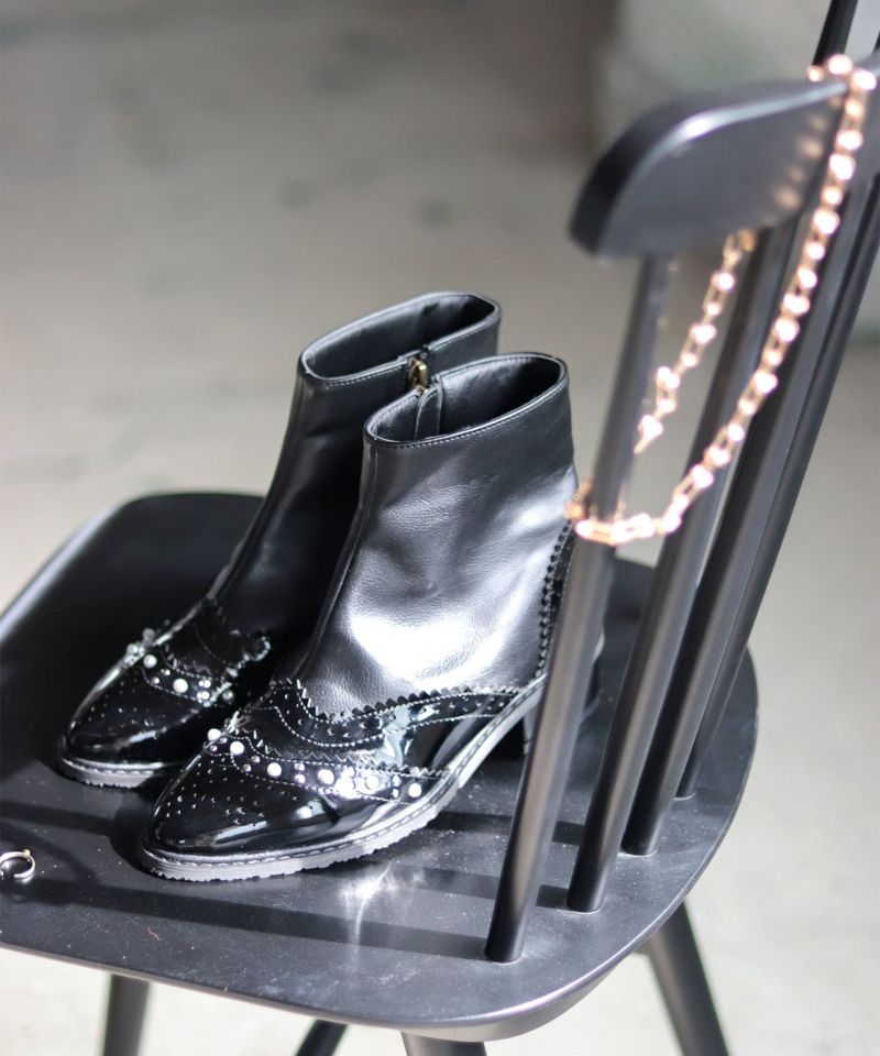 4. パール×ウイングチップショートブーツ▲返品不可