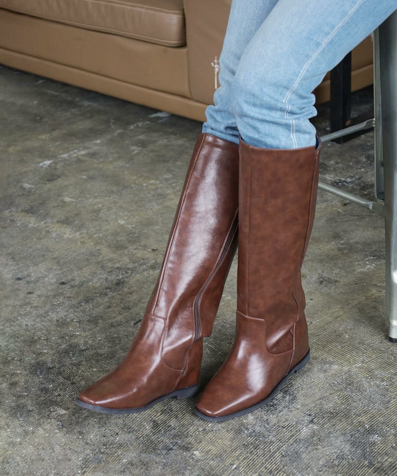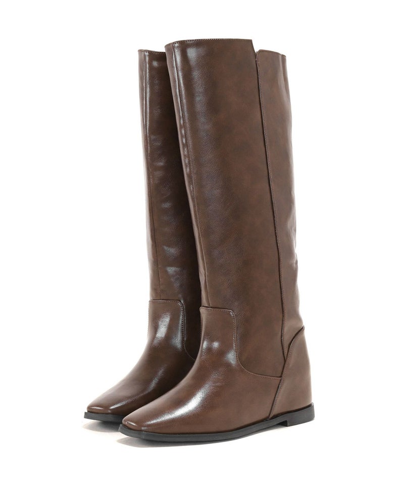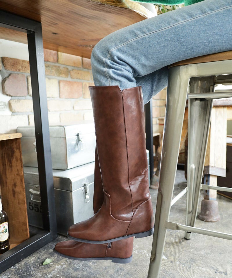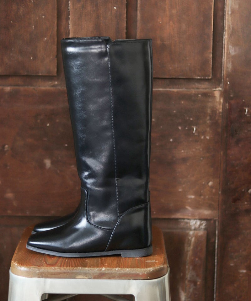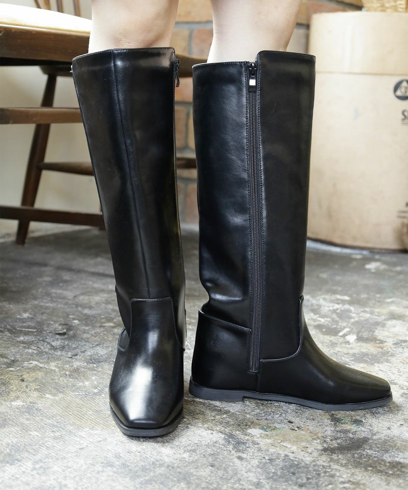 こっそり忍ばせた"インヒール"でスタイルアップ!一見フラットながら約3cmのインヒール内蔵で、美脚を叶えてくれるストレートロングブーツ。
