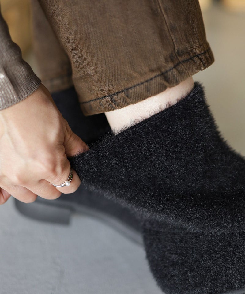 さっと履いて、さっと脱げる。その一瞬で足を優しく包み込みます。そんなあったかシャギーソックスショートブーツで、冷たい冬の日々も、温かく過ごしませんか?
