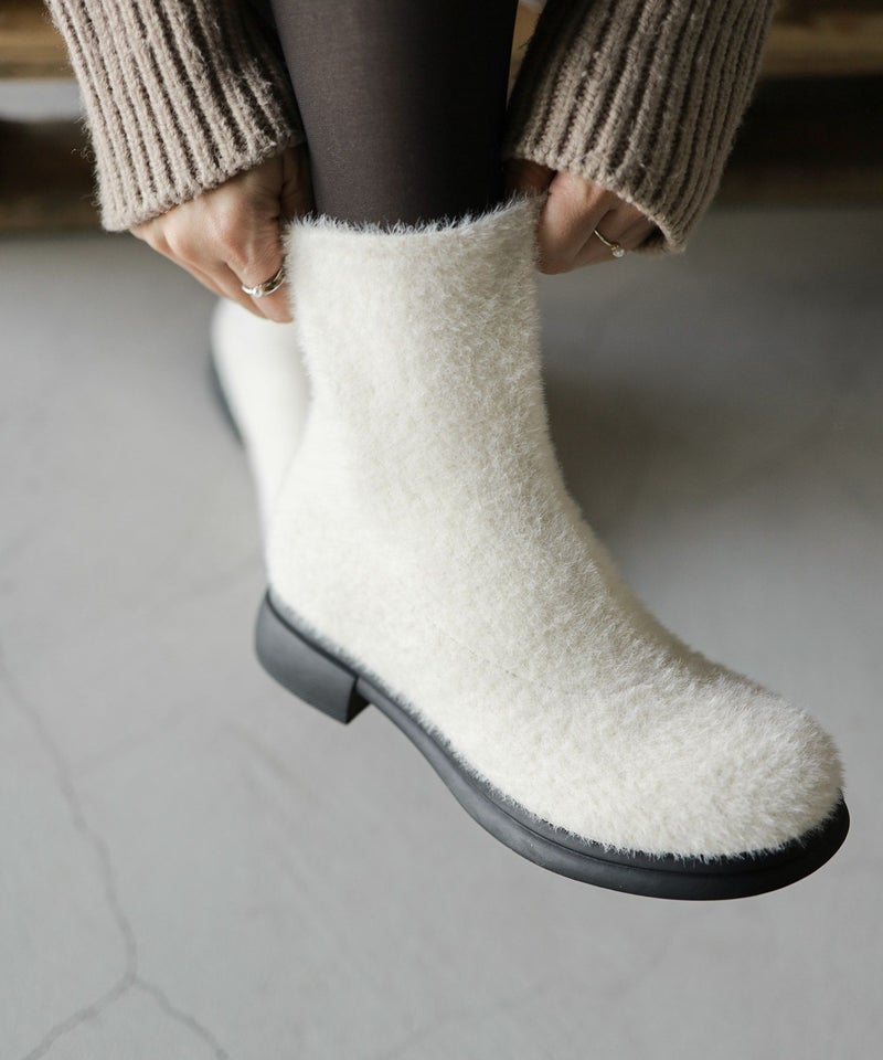足元から感じる心地良さを、もっと特別に。あったかシャギーソックスショートブーツは、まるで靴を履いていないような優しいフィット感が魅力。