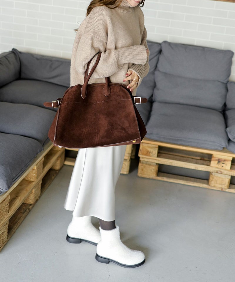 寒い季節に嬉しいのは、ブーツ全体に施されたシャギーの温かさ。ふわふわの素材が足全体を包み込み、冷えを防いでくれるので寒い日も安心です。