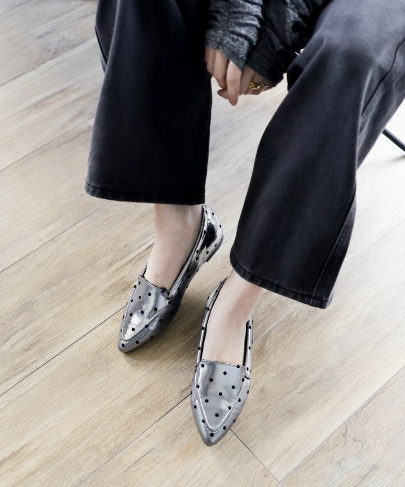 カジュアルな印象が強いモカシンも、ポインテッドトゥデザインにすることで足元を綺麗に魅せ、すっきり女性らしい印象に。
