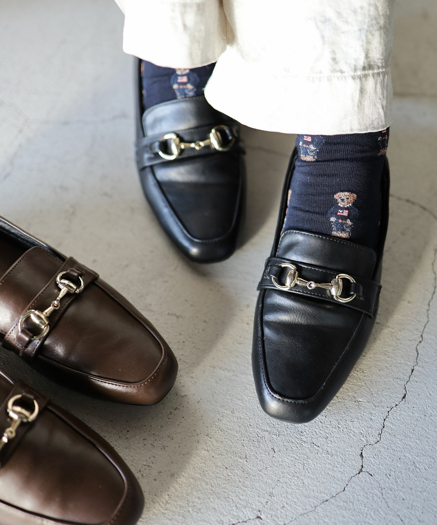 素足にはもちろん、ソックスやタイツなどに合わせるなど、シーズンレスに使えるビット付きローファーです。