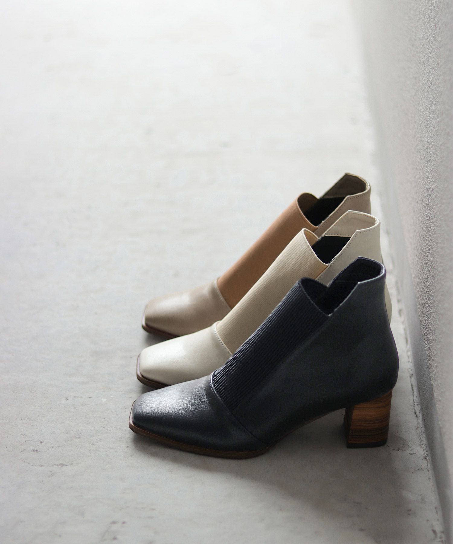 サイドから見たときのラインも美しく、細身のスッキリとしたフォルムが大人の足もとに◎トレンドのスクエアトゥで、今年らしく、モード感もプラスしました。
