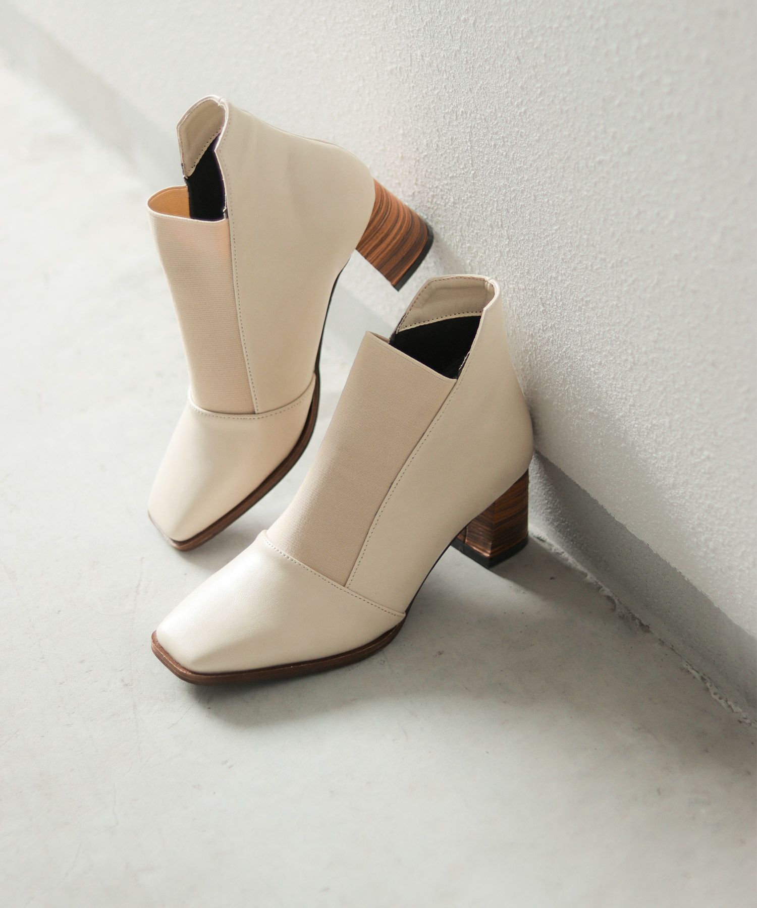 ウッドヒールのゴムフィットアンクルブーティ風パンプス【公式ショップ・ZOZOTOWN・amazon限定販売アイテム】