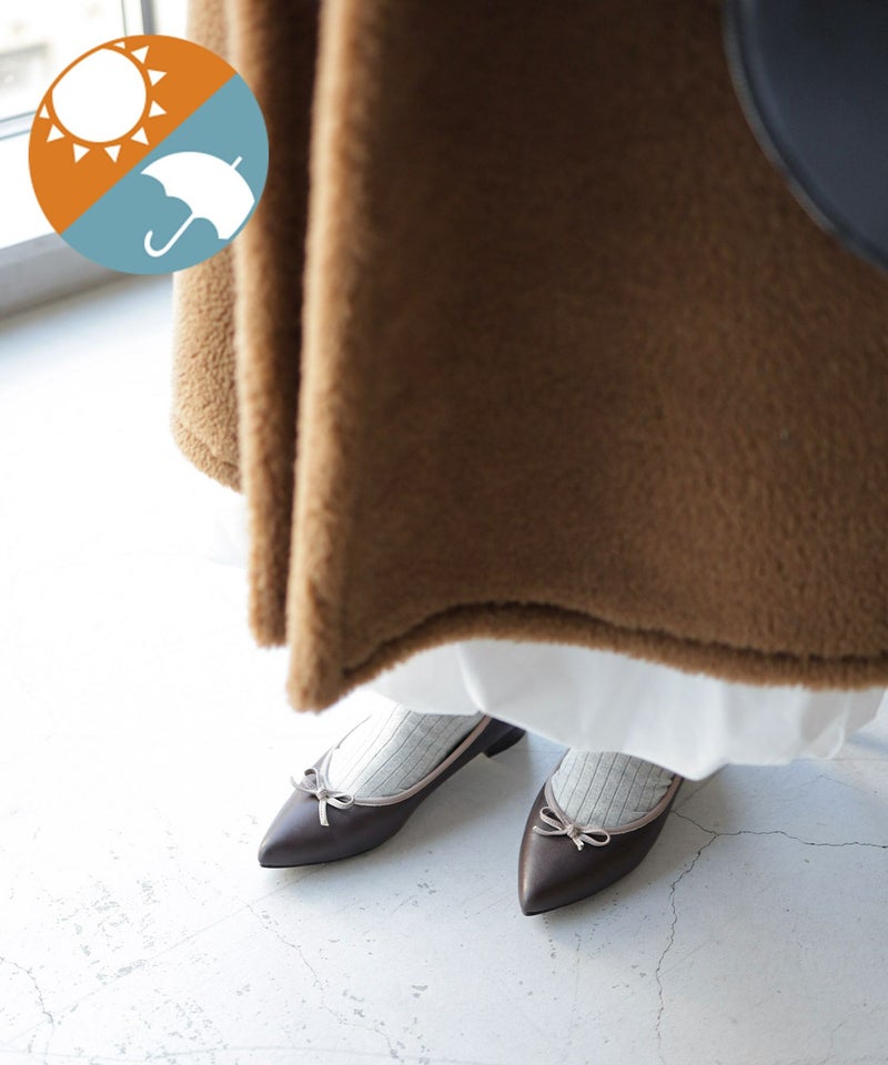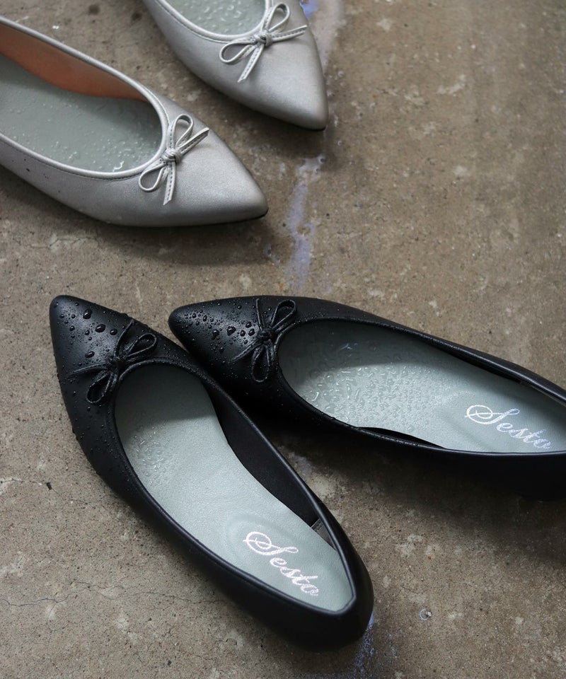 ポインテッドトゥのリボン付きローヒールレインパンプス/レインシューズ