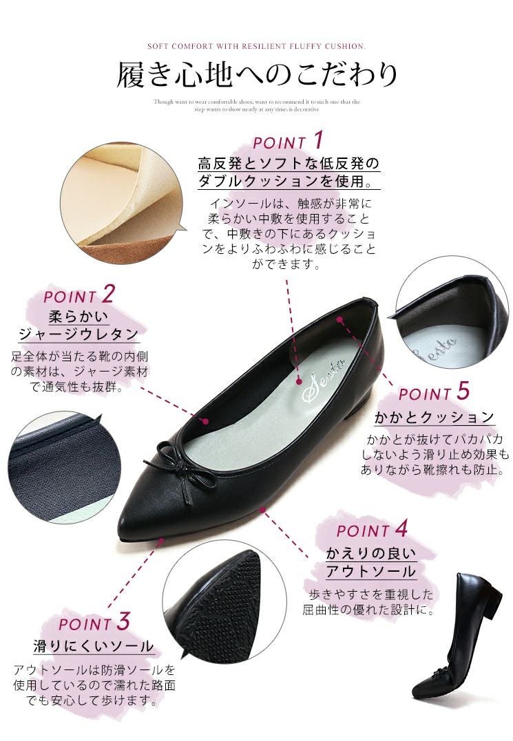 トゥに厚みをつけて中の体積をアップさせることで、つま先が痛くなりにくく窮屈感を軽減した幅広さんでも履きやすいポインテッドトゥのデザインに仕上げました。