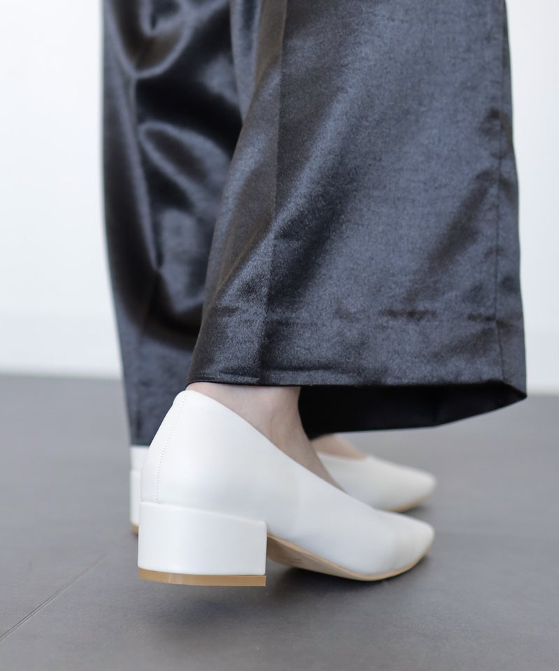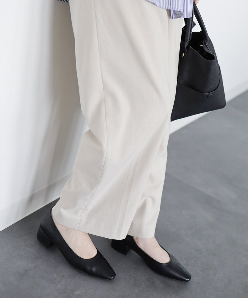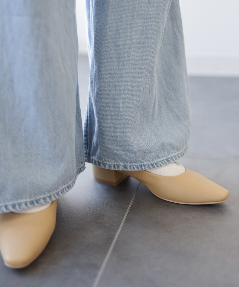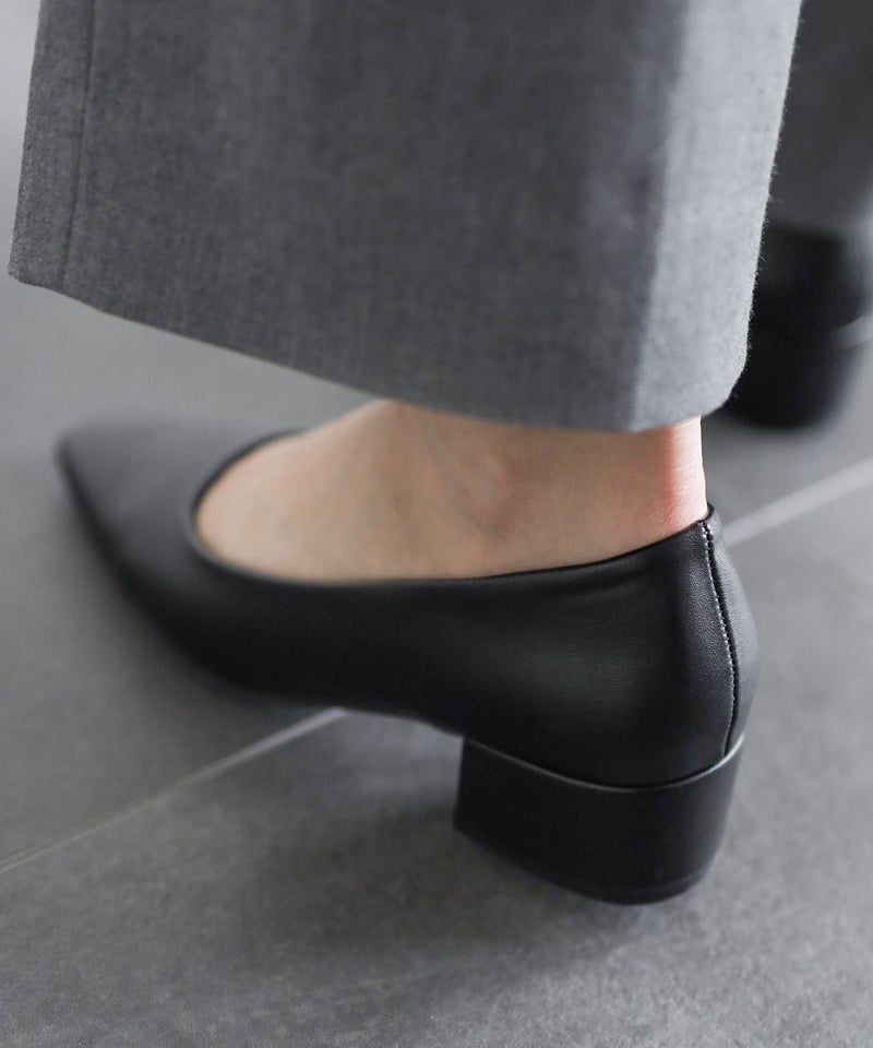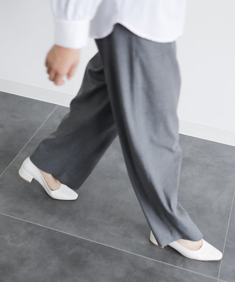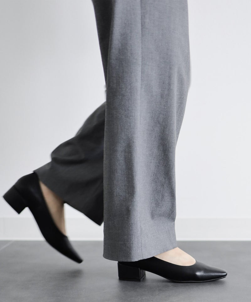 「ポインテッドだとつま先は痛い。でも足元はシャープに見せたい」そんな声に応えて、あえてスクエアトゥを採用。指先の圧迫を軽減しながら、見た目はすっきり。履いた瞬間からラクなのに、美しいシルエットが魅力の1足です。