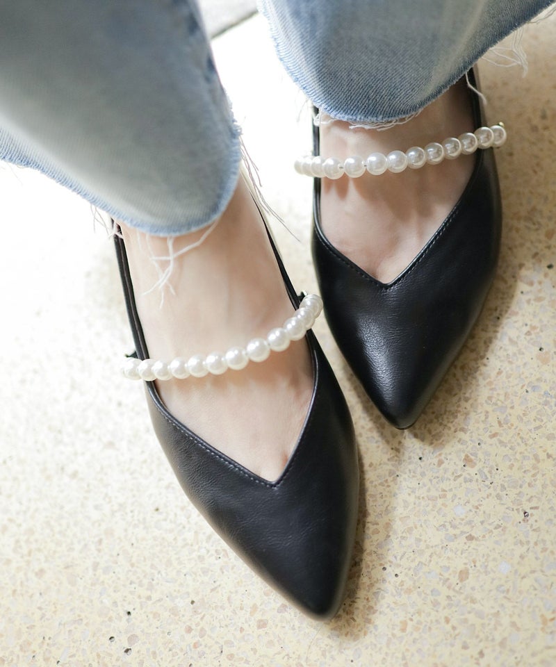 さまざまなデザインがある中で、上品な足元に魅せるコツは"パール"。