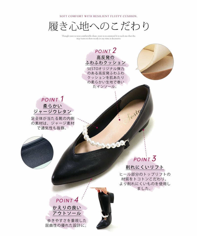 4. パールストラップのポインテッドトゥローヒールメリージェーンパンプス▲返品交換不可