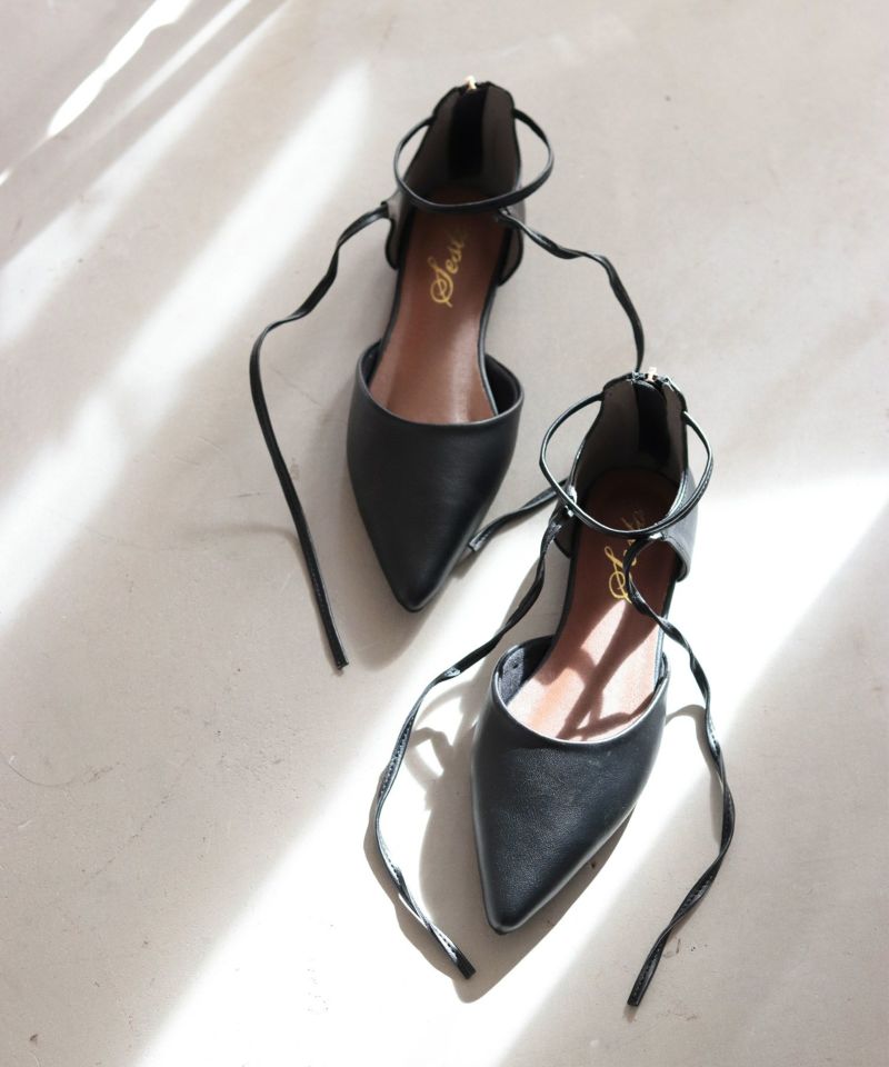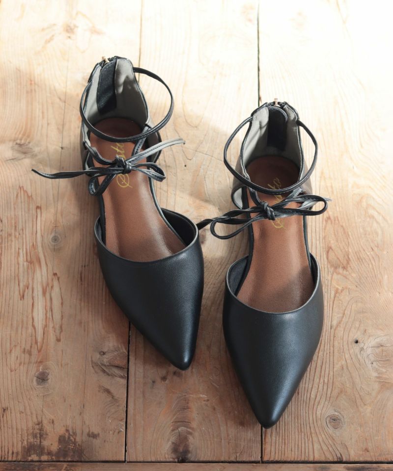 バックファスナー付きポインテッドトゥレースアップフラットパンプス