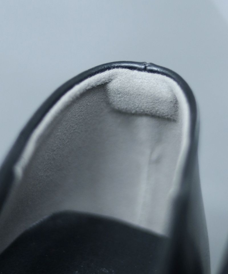すらっとシャープなフォルムは、足がきれいに見えるセミスクエアトゥ。先端に少し幅があることでつま先全体に余裕が生まれ、ポインテッドトゥよりも窮屈感を感じない形です。