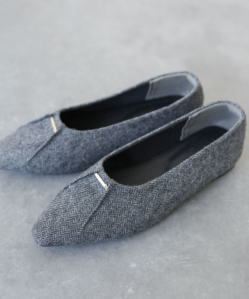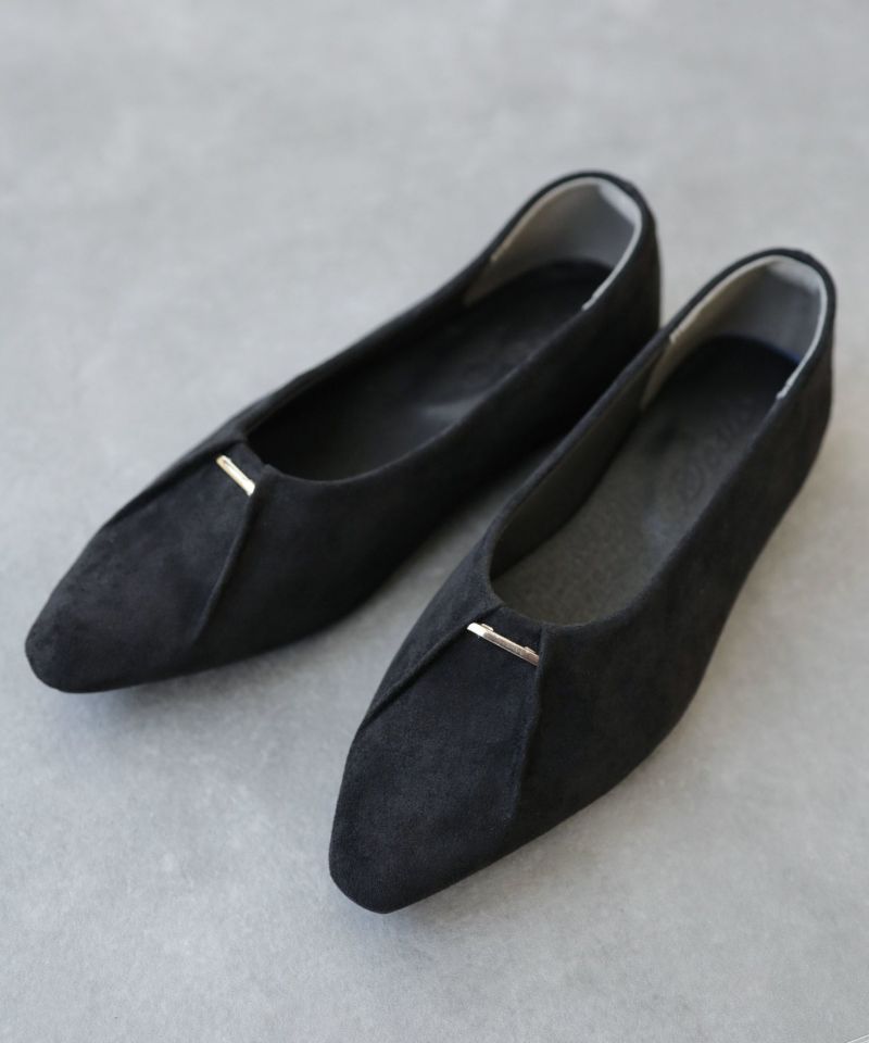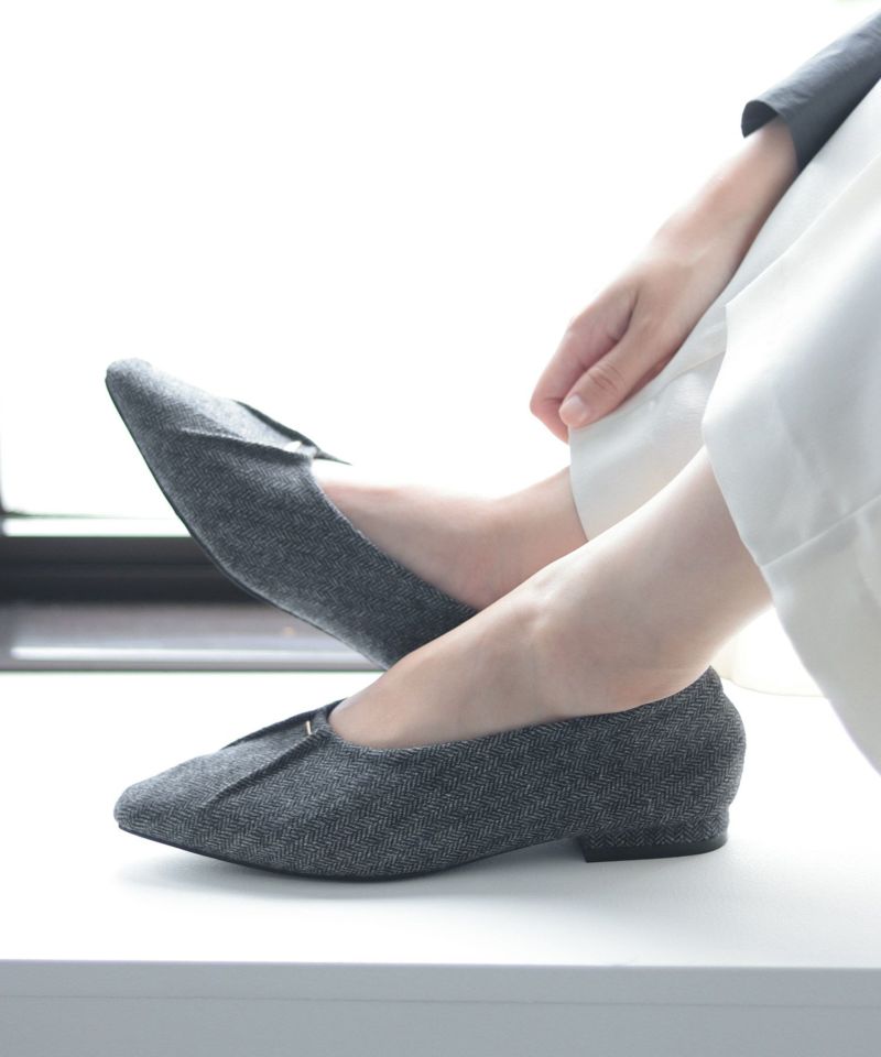かかとが踏めて柔らかい、シャープトゥフラットパンプス
