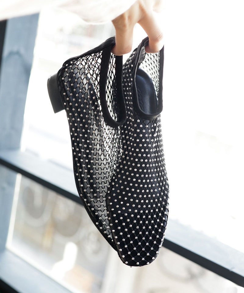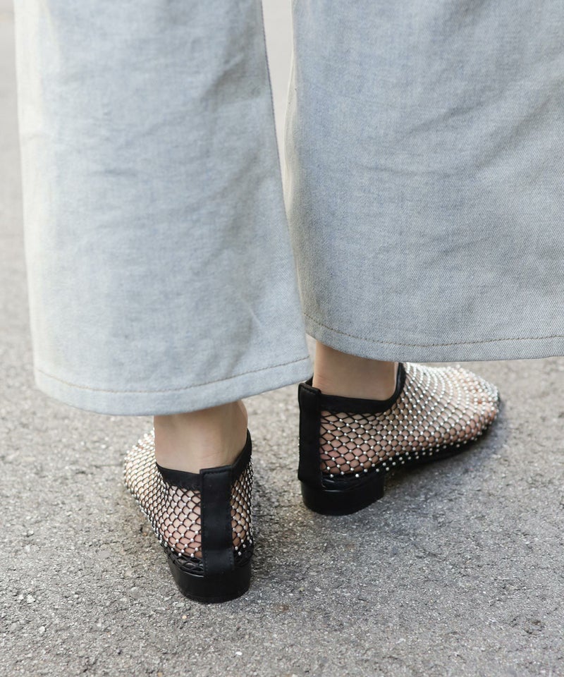 フィッシュネットはトレンドライクなデザインだけでなく、伸縮する素材で実用性も抜群。自分の足の形に合わせて優しくフィットしてくれるので、一日中履いても快適な履き心地です。