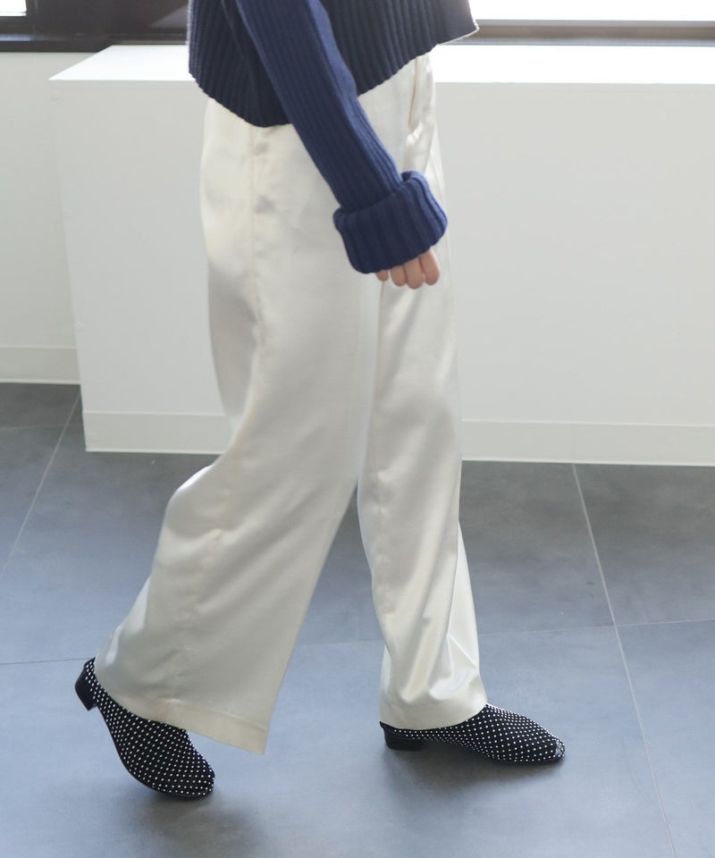 足元をすっきりと演出してくれる、少しシャープなフォルムのスクエアトゥ。ヒールは約2cmのローヒールなので、フラットシューズのような感覚で履けて、さりげなくスタイルアップできます。