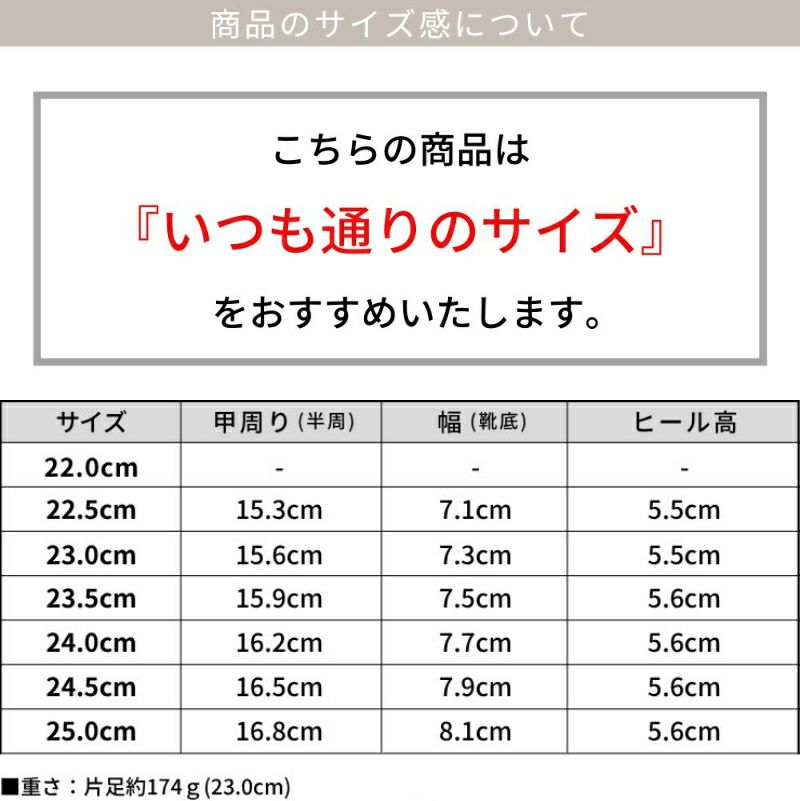サイズ 甲周り(半周) 幅(靴底) ヒール高