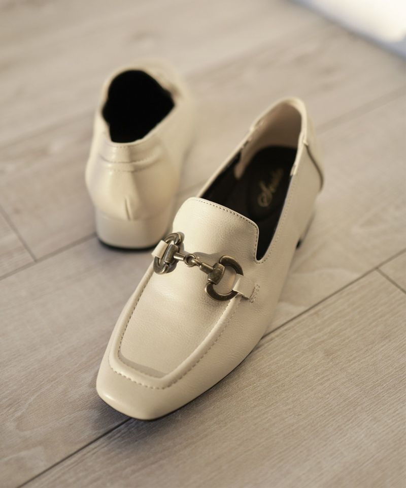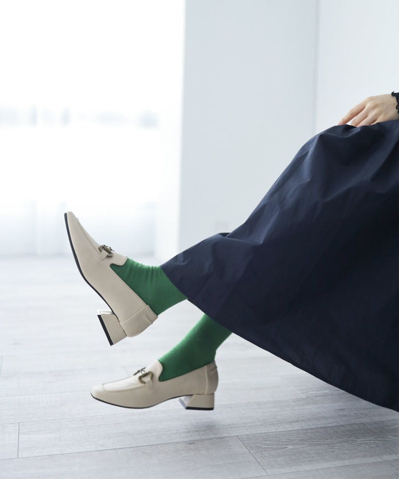 今年らしいスクエアトゥに少しヒールを添えて、女性らしくブラッシュアップしたビットローファーパンプス。
