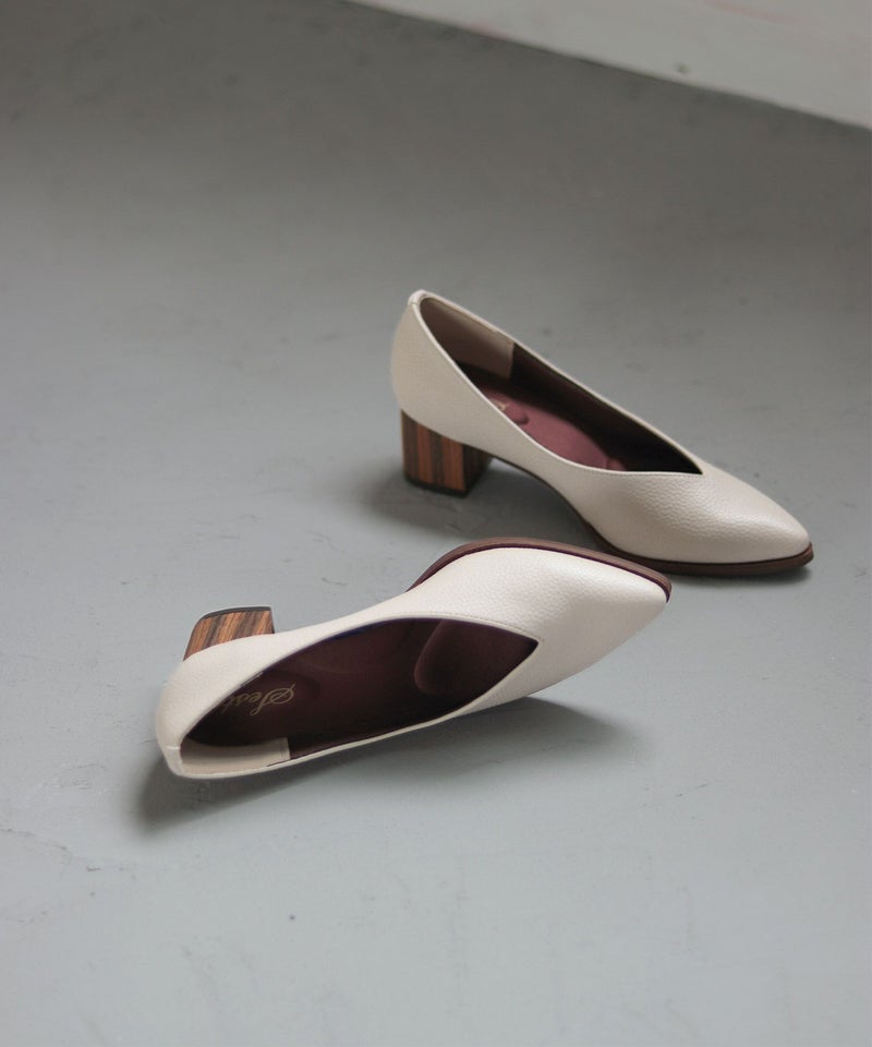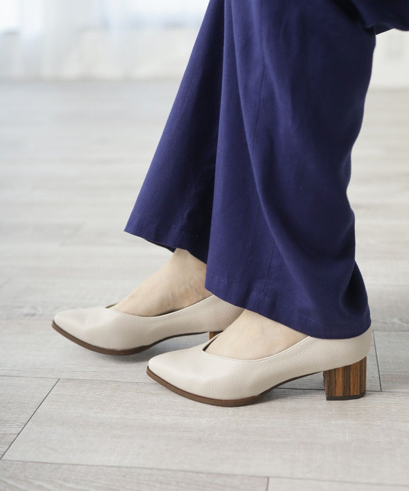 3. 革ピース×ウッドヒールのポインテッドトゥパンプス▲返品交換不可