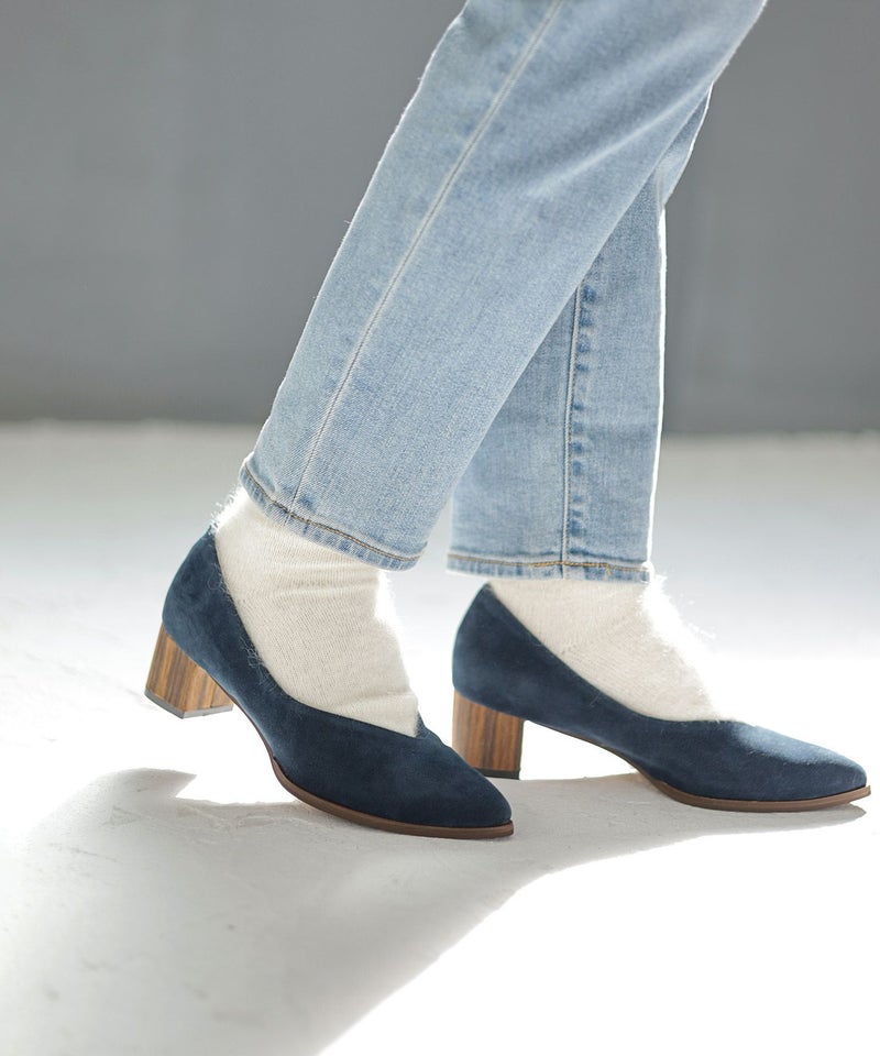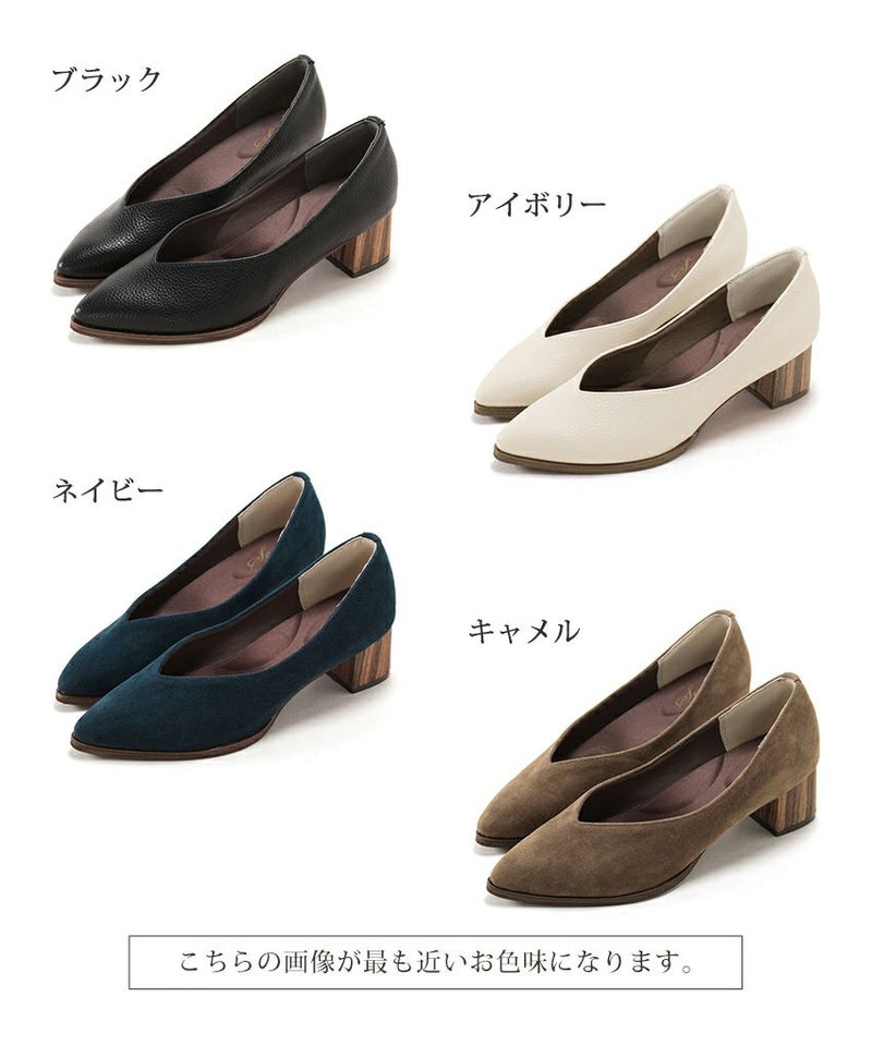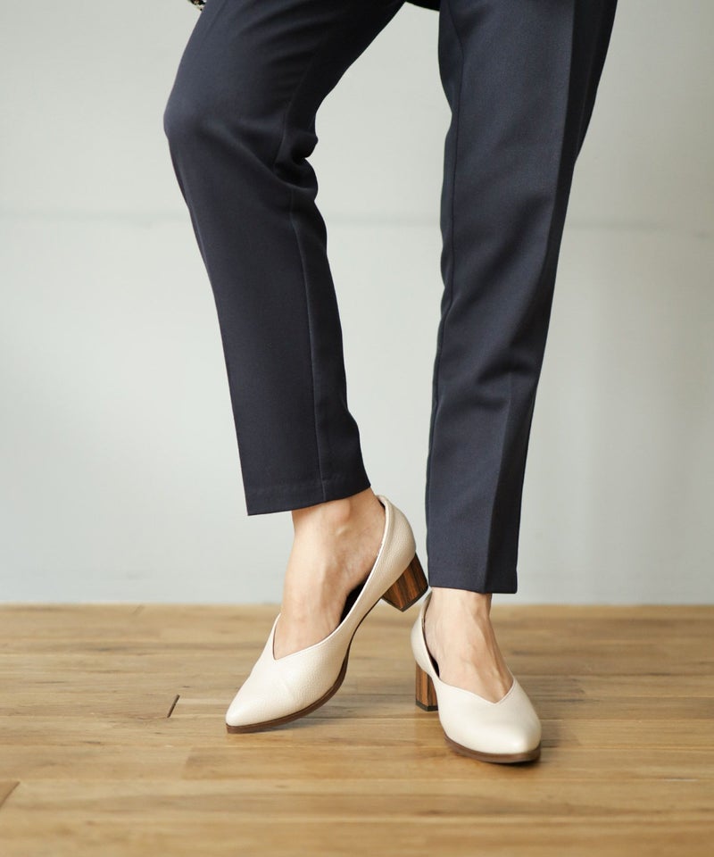 4. 革ピース×ウッドヒールのポインテッドトゥパンプス▲返品交換不可
