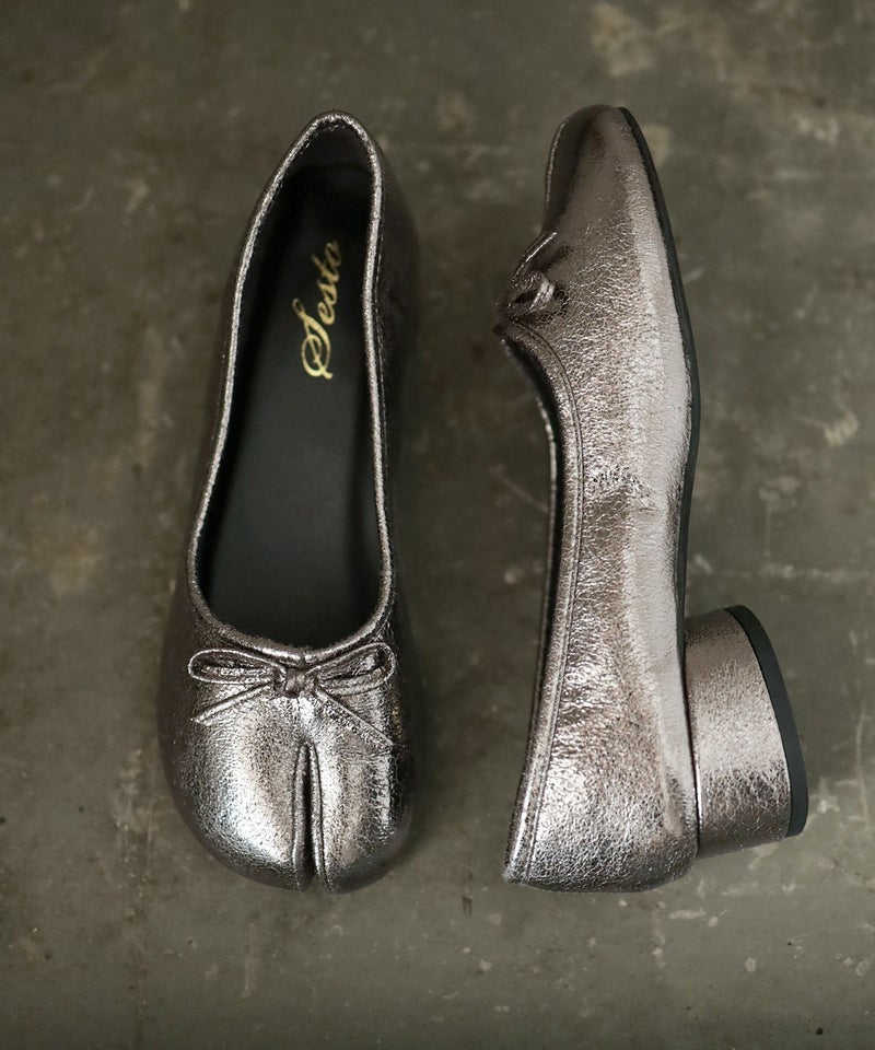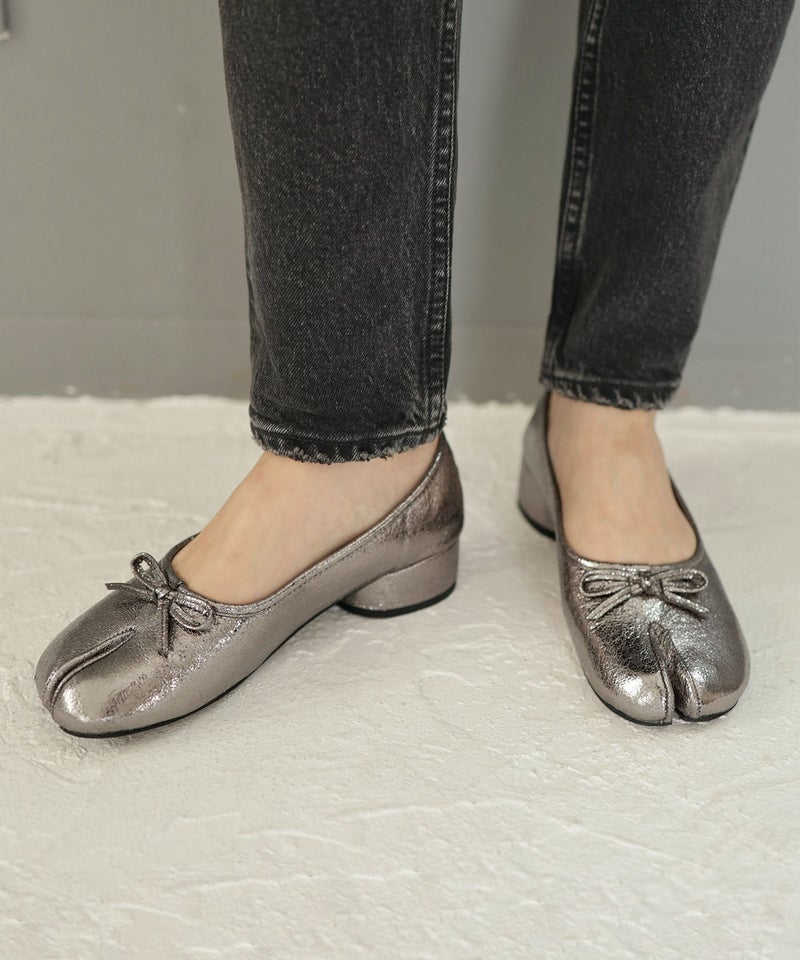 今季のトレンドムードたっぷりなメタリックカラーで、足元に華やかさと存在感をプラスしてくれます。