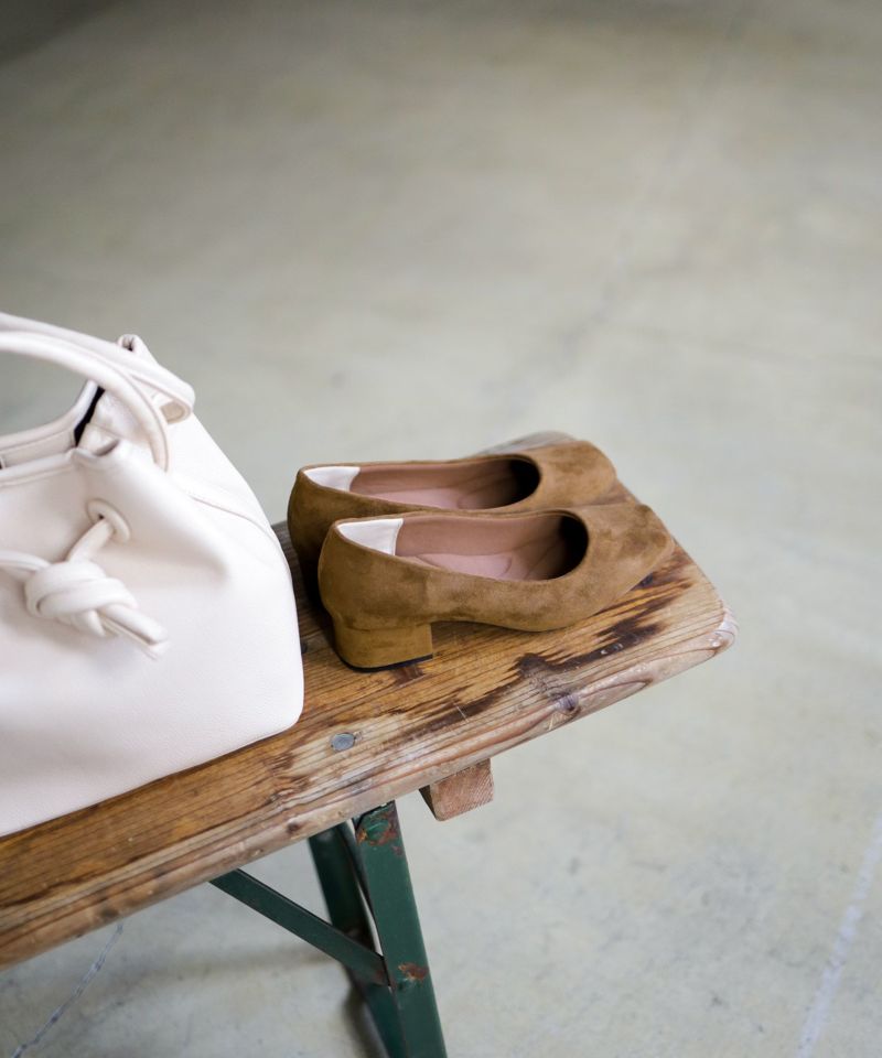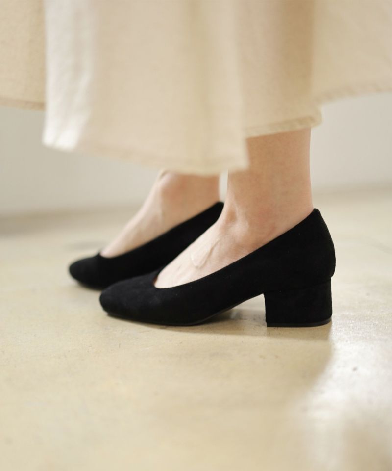 デイリーからお仕事まで使えるようヒールもアッパーと同素材のスエード調素材で仕上げ、シンプルに磨きをかけました。