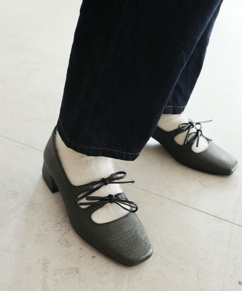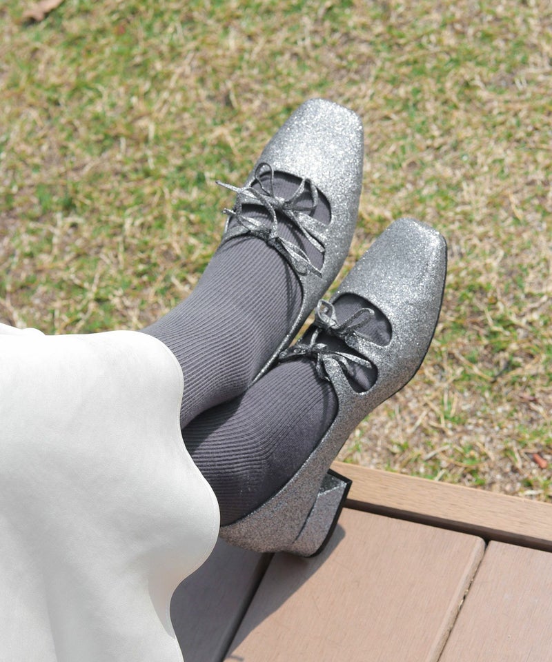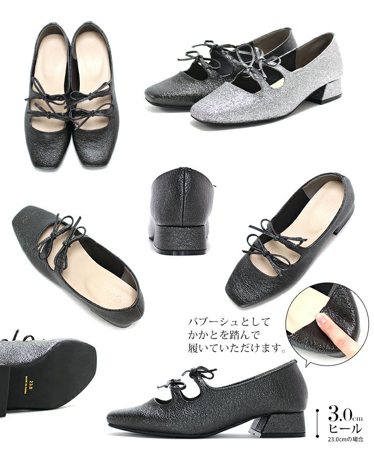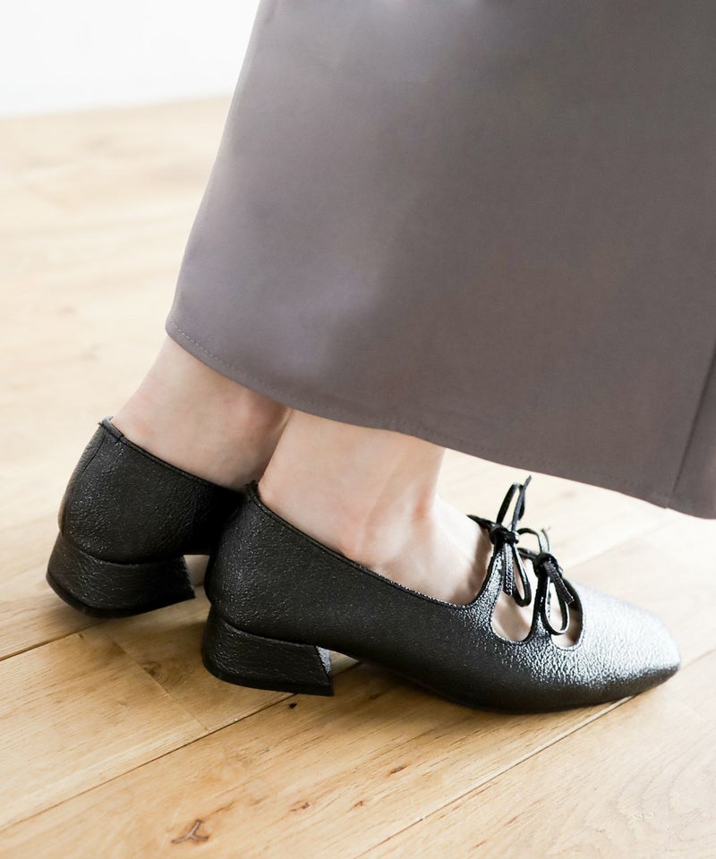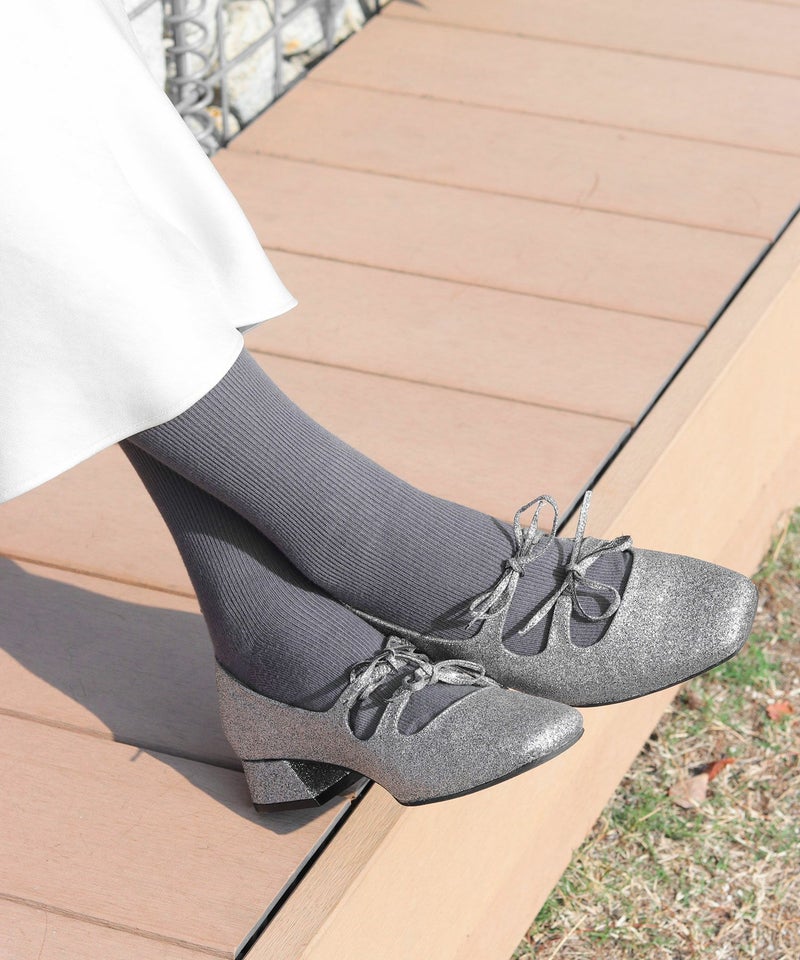 4. レースアップ風リボンゴムストラップメリージェーンパンプス
