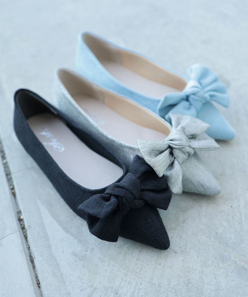 甘めのリボンデザインをピリッと引き締めてくれるポインテッドトゥ。