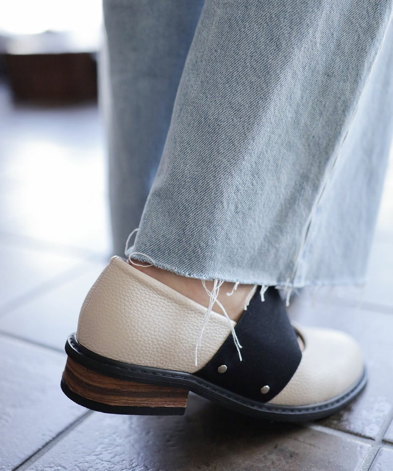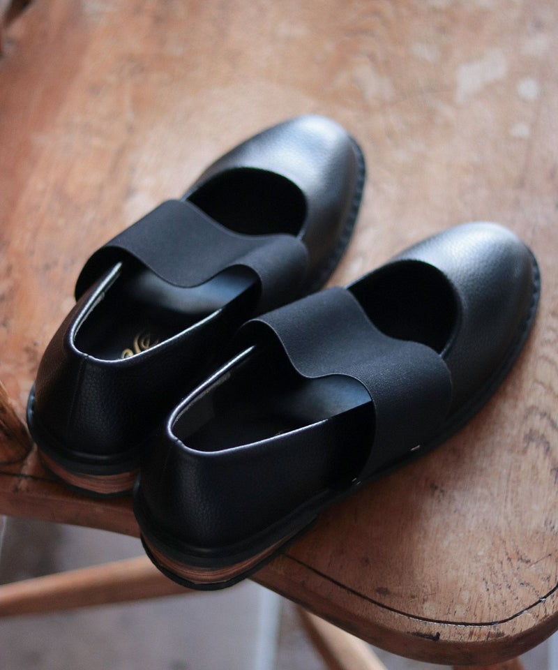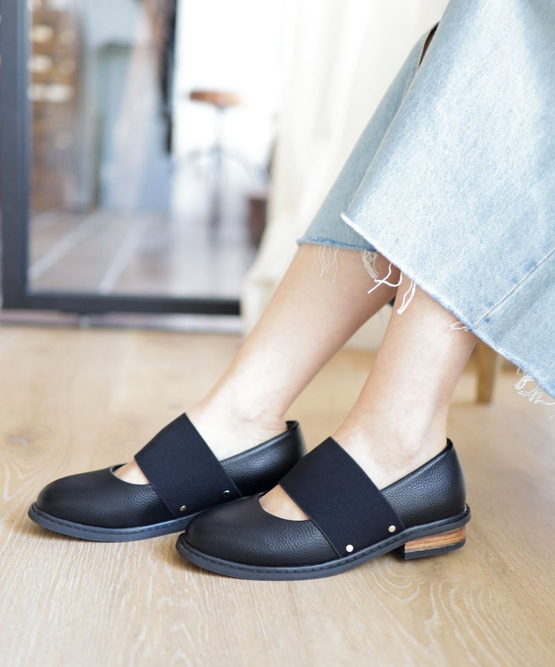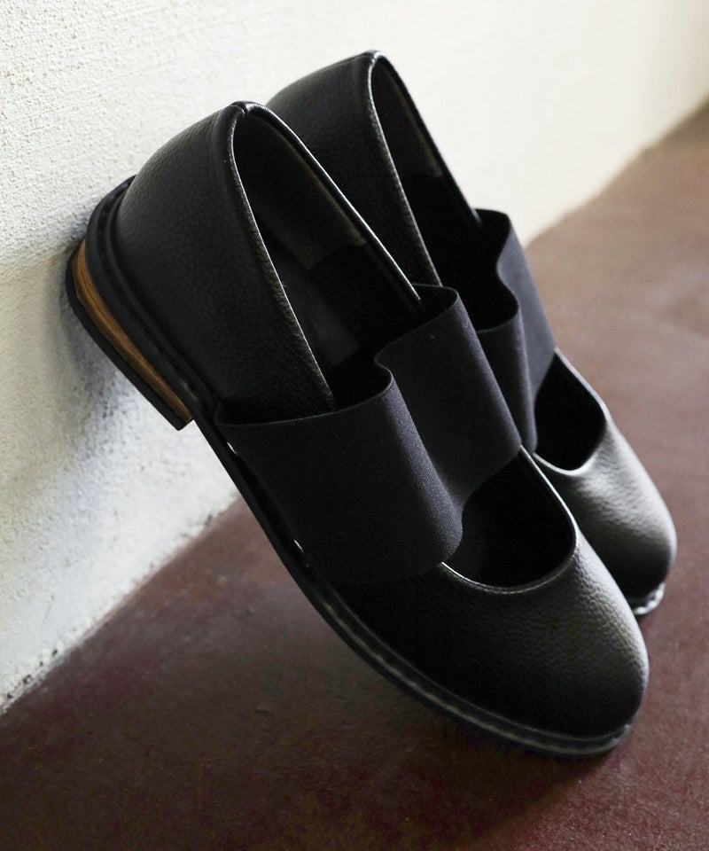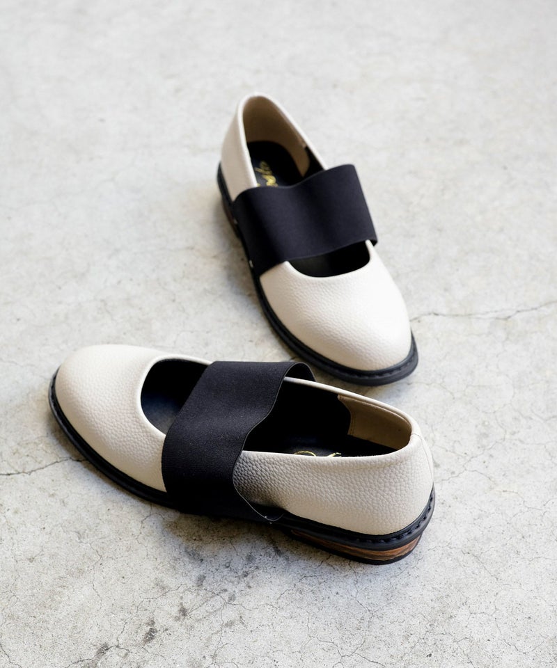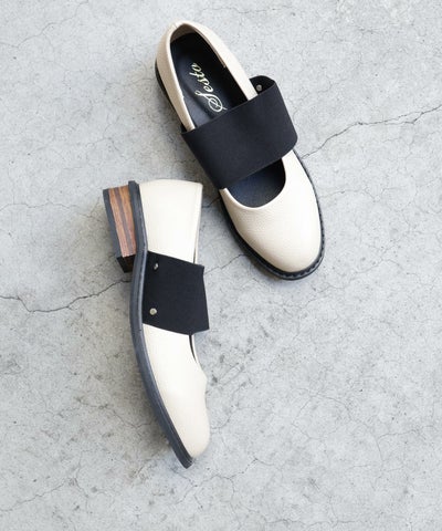 商品説明「ゴムのサポートで足に優しいローファー」をコンセプトに生まれた一足。