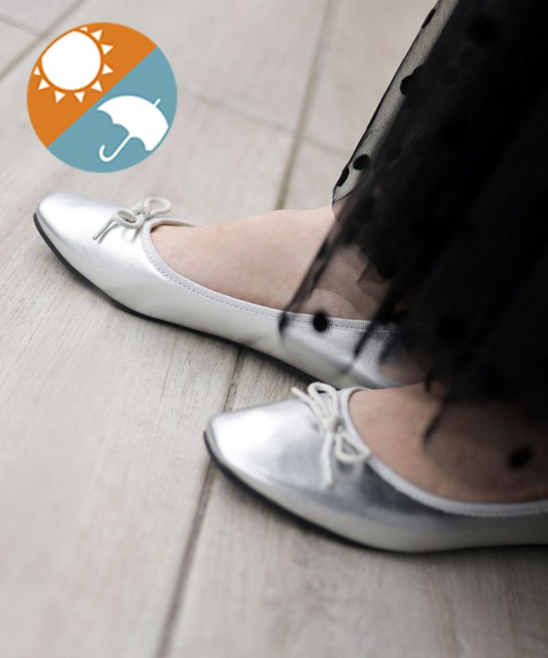 見ためはどんなお洋服にも合うバレエシューズですが、きっちり水から守ってくれるので雨の日も晴れの日も活躍してくれます。