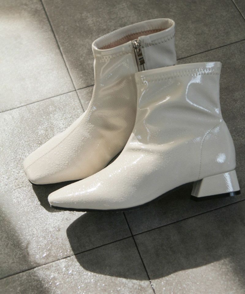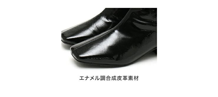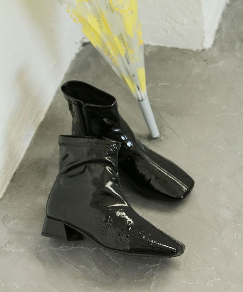 素材は柔らかいエナメル素材を使用、足に優しくフィットし雨の日じゃなくてもストレッチブーツとしてオシャレに履いていただけます。