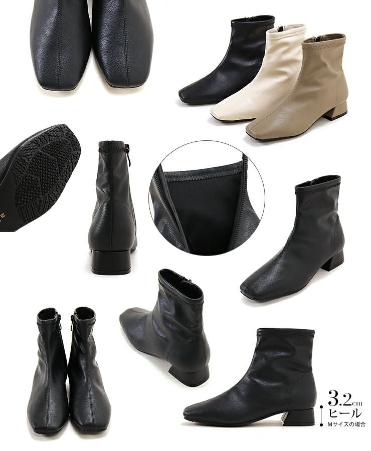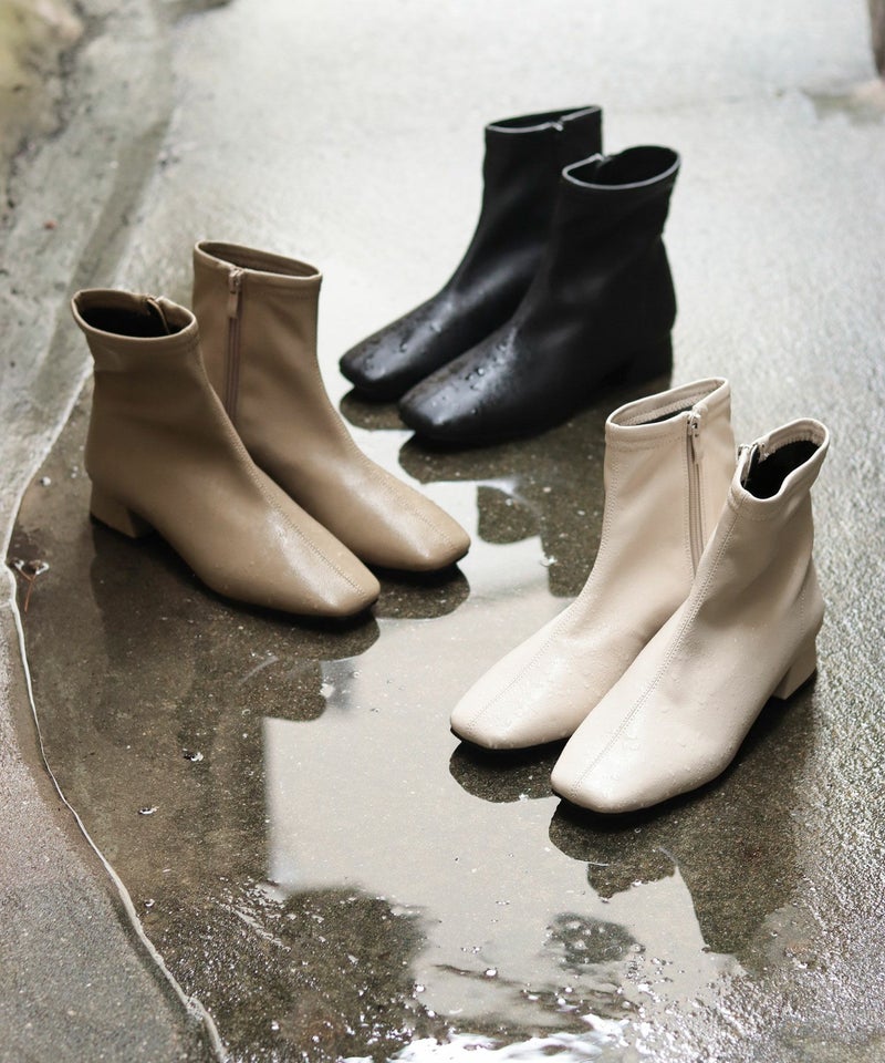 4. 生活防水!レイン仕様スクエアトゥローヒールショートブーツ 一部4月中旬入荷予定