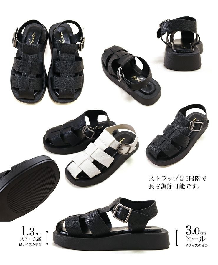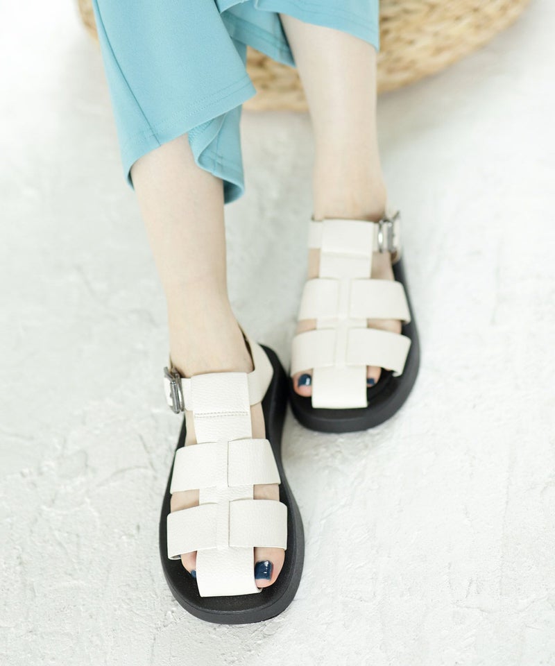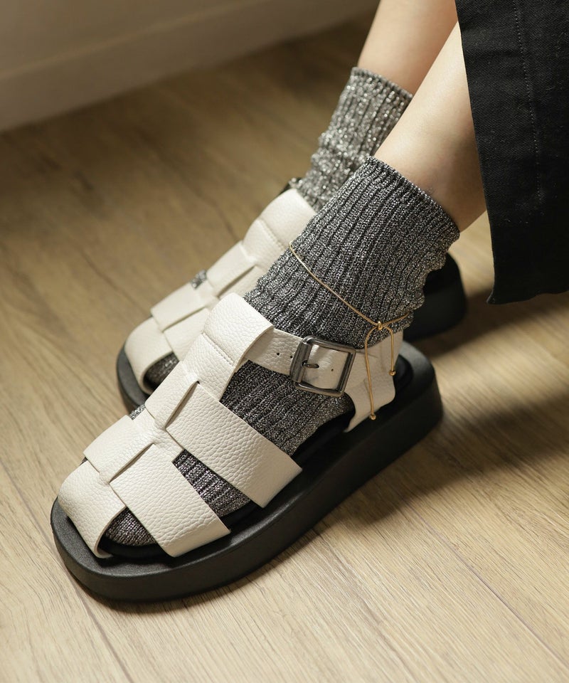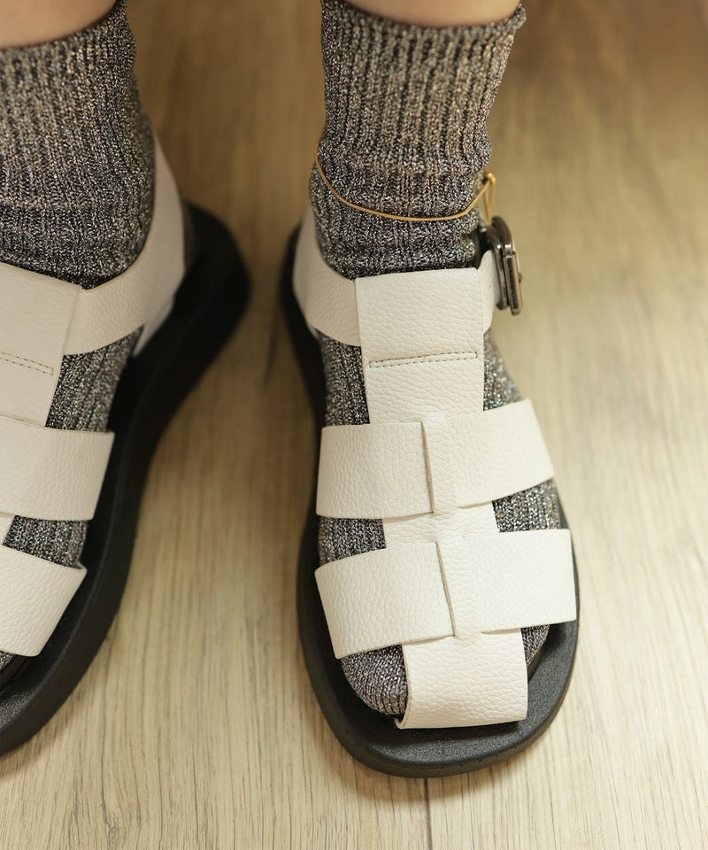 太めのアッパーで編み込まれたデザインはしっかりつま先まで覆ってくれるので、サンダルが苦手な方にも取り入れやすく、靴下合わせでもおしゃれに決まります。