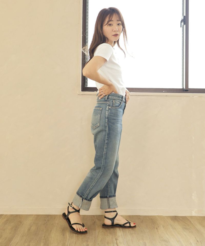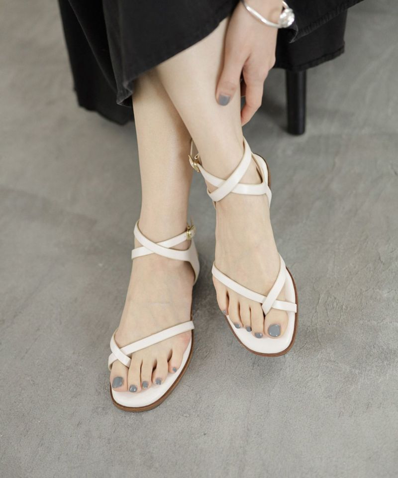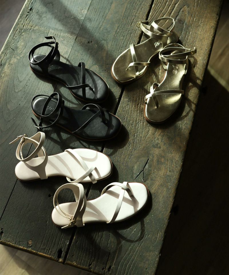 華奢なストラップは足がきれいに見える幅感に調整し、女性らしい雰囲気で履いて頂けます。