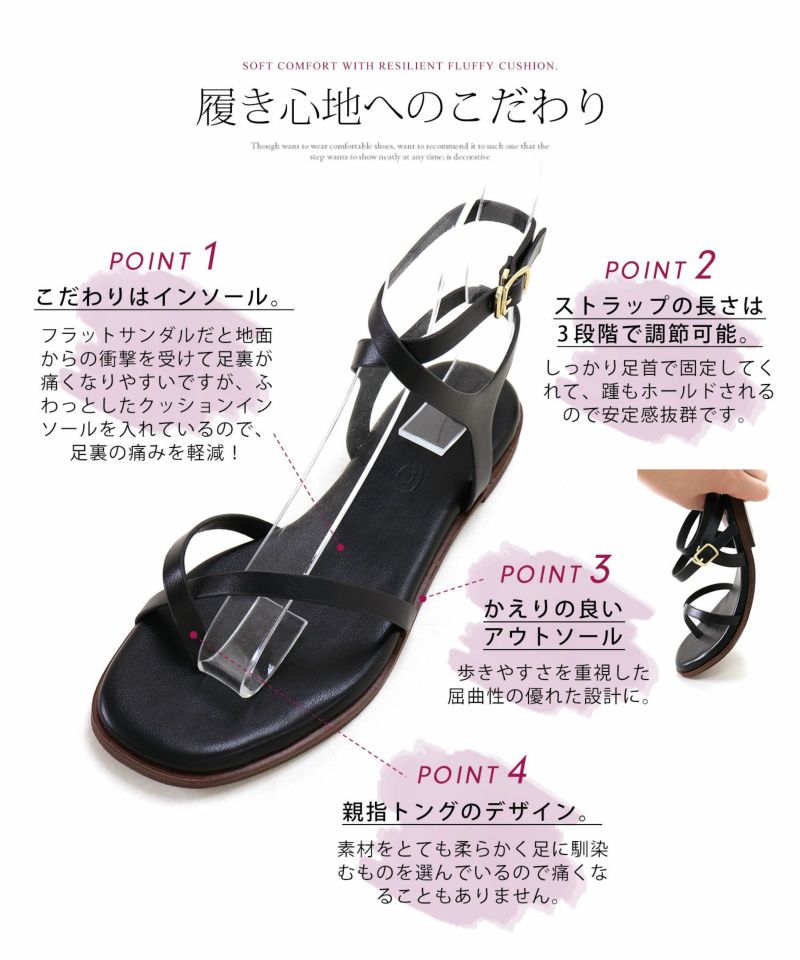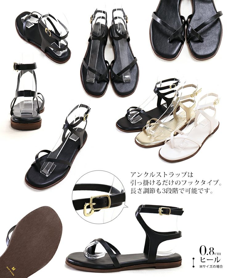 4. 革ピースのアンクルストラップトングフラットサンダル【1点でゆうパケット】▲返品不可