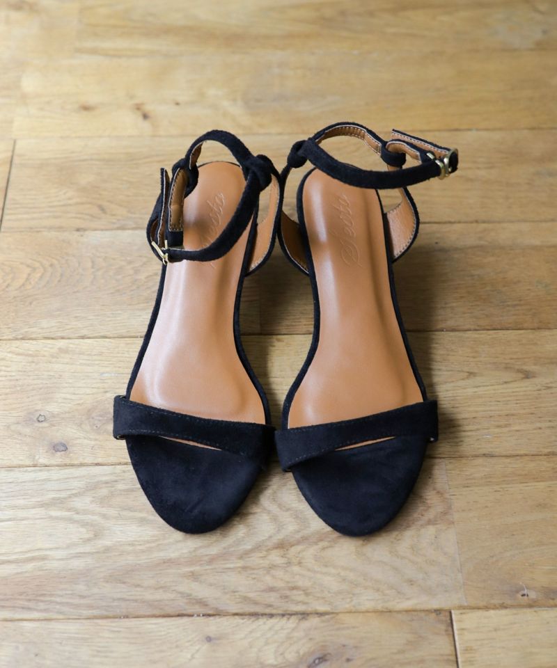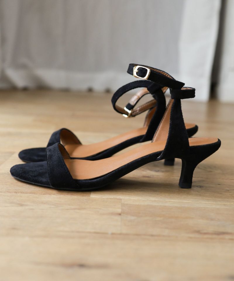 ホールド感のあるアンクルストラップとミドルヒールで快適な履き心地です。