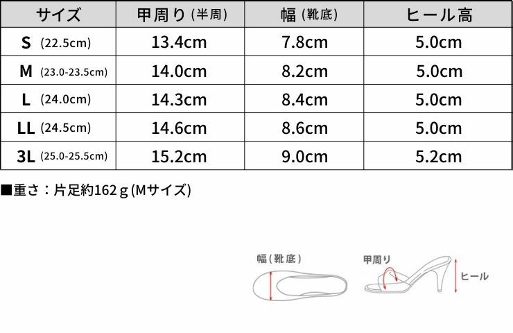 甲周り(半周)/幅(靴底)【S】13.4cm/7.8cm