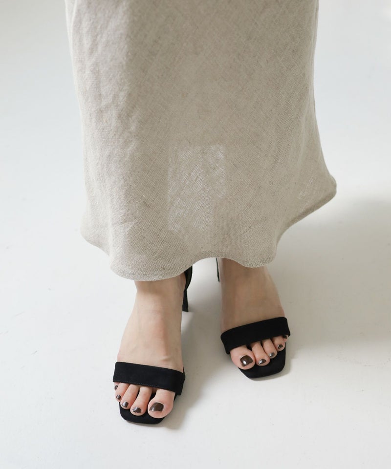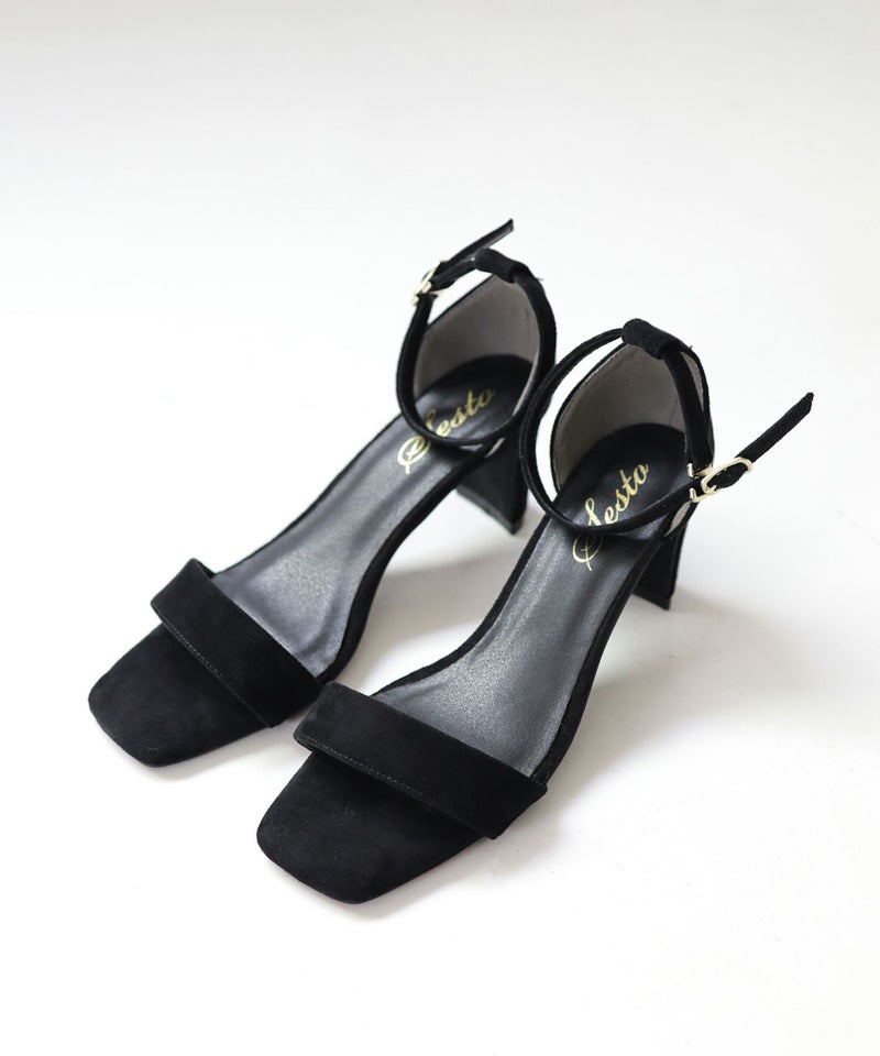 プレートヒールアンクルストラップサンダル 一部3月末頃入荷予定