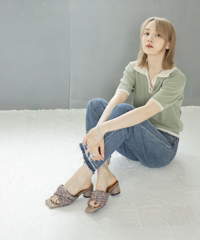 4. 編み込みデザインサークルヒールミュールサンダル▲返品不可